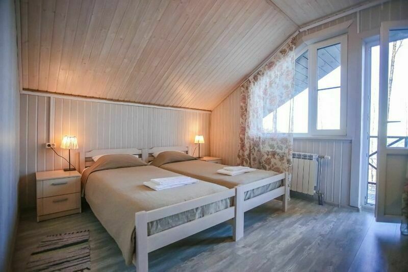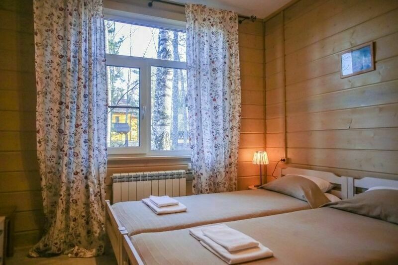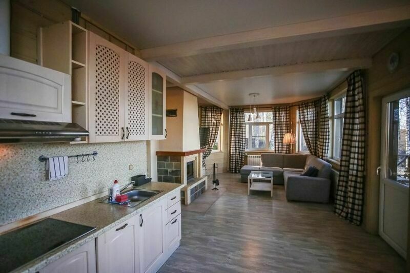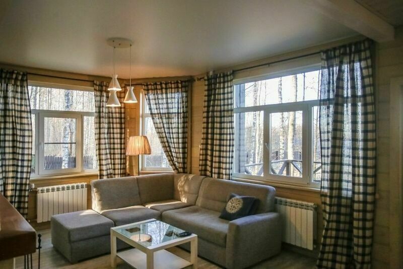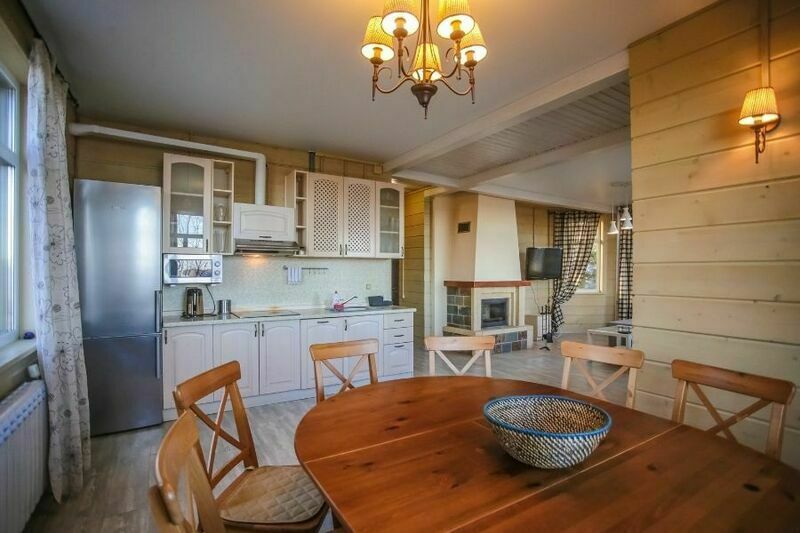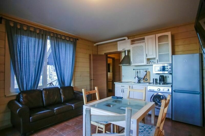 Для удобства гостей в домах есть большая кухня-гостиная со всем необходимым для готовки, 2 санузла, сауна, одна спальня на первом этаже и четыре спальни на втором этаже. Все санузлы оснащены тёплым полом. Рядом с домом есть своя беседка с мангалом. Дом рассчитан на 10 гостей, возможно дополнительное размещение 2х гостей в гостиной на первом этаже.