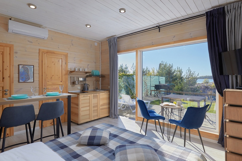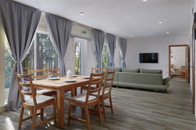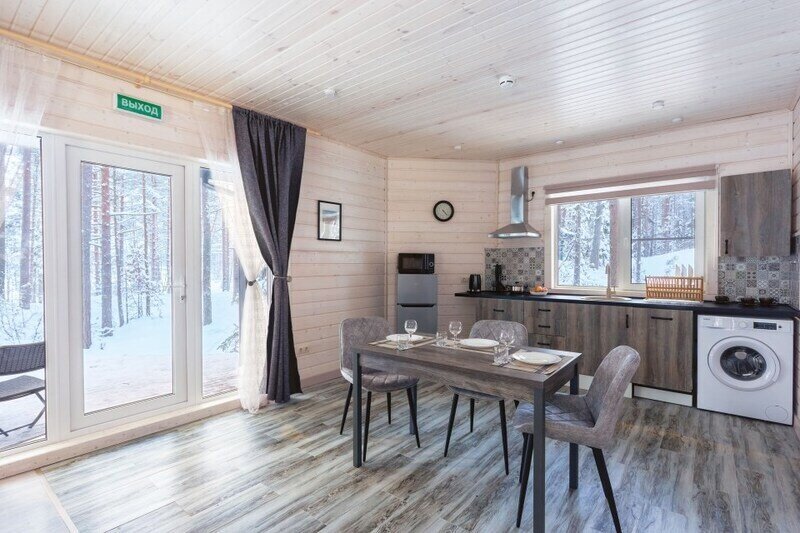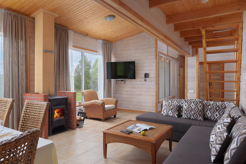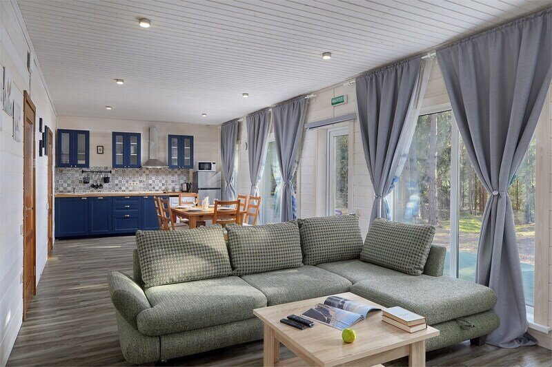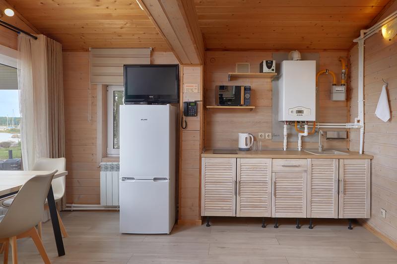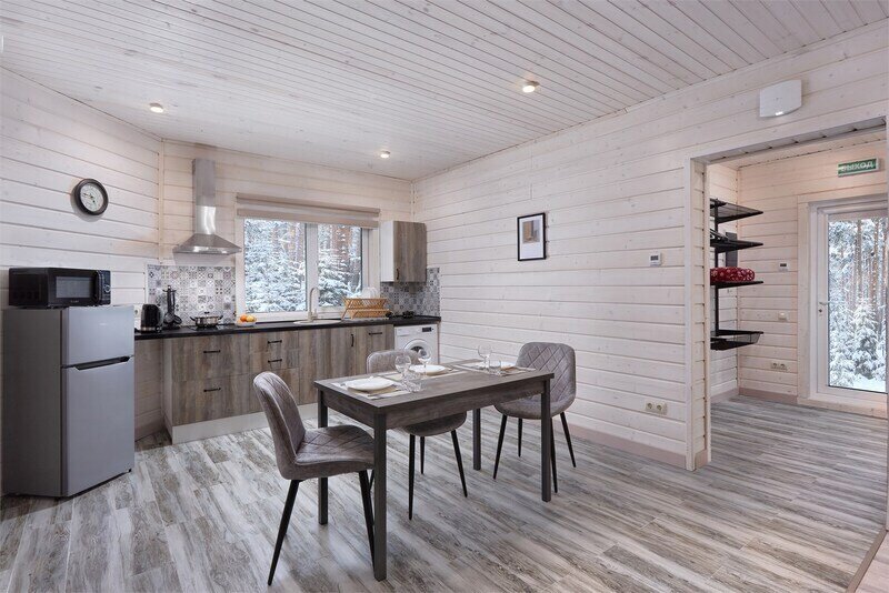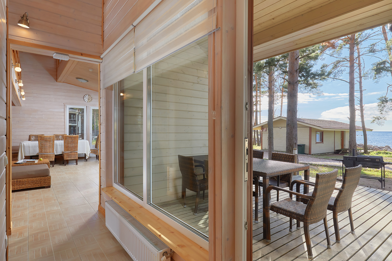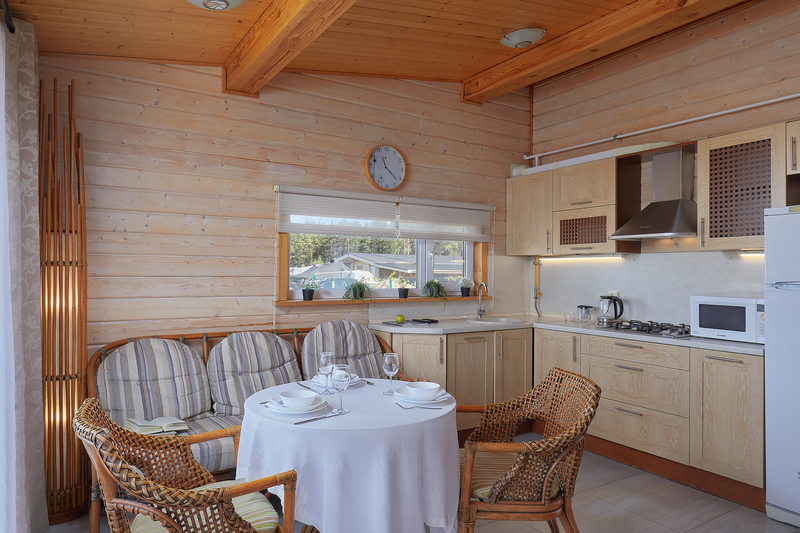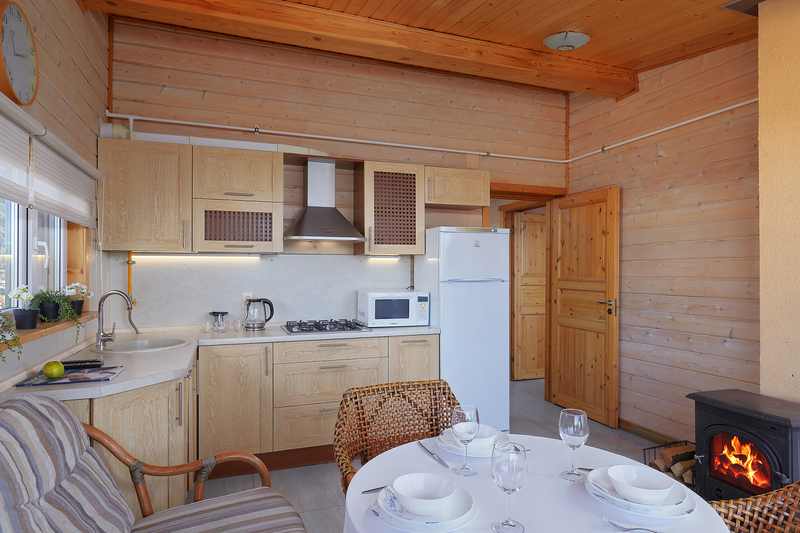 В каждом доме (100 м2) есть три спальни, большая гостиная, сауна, Wi-Fi, гриль