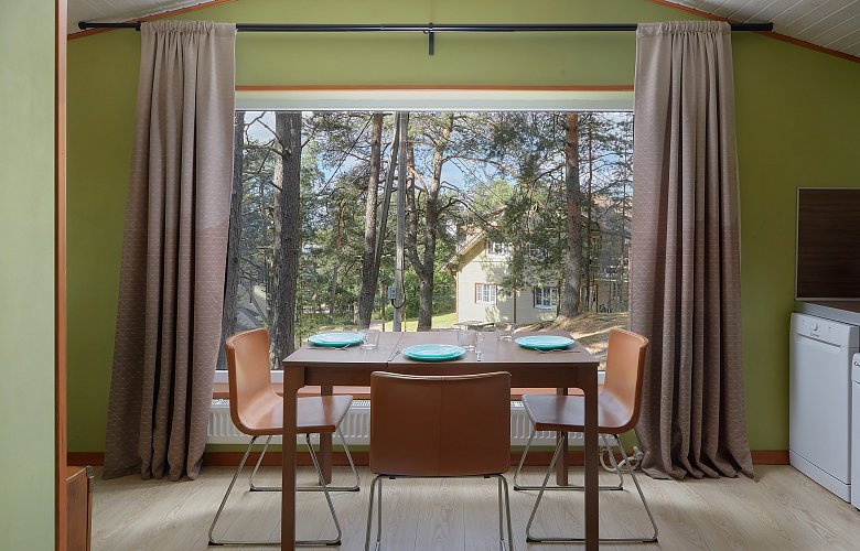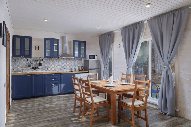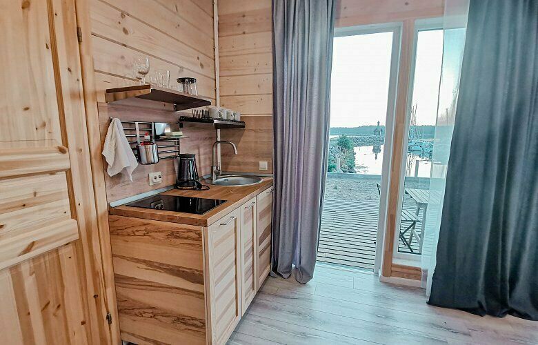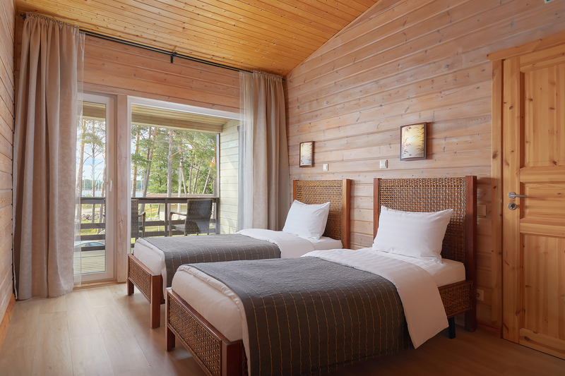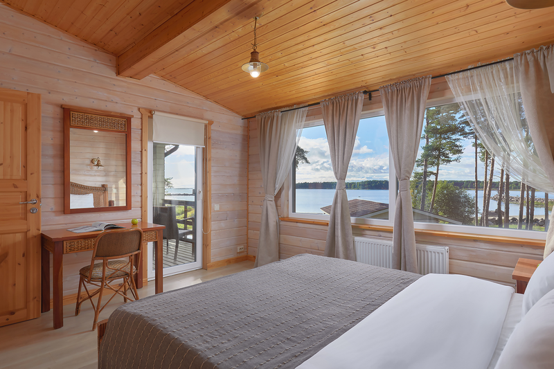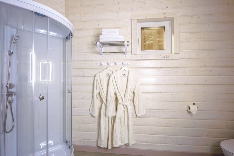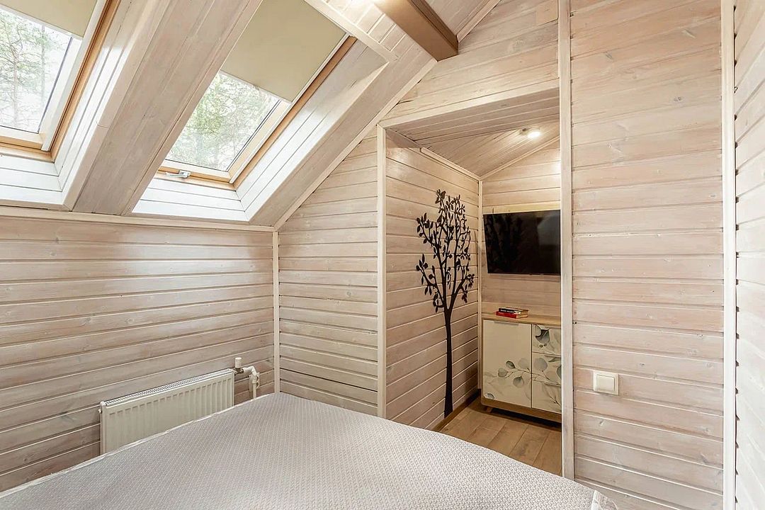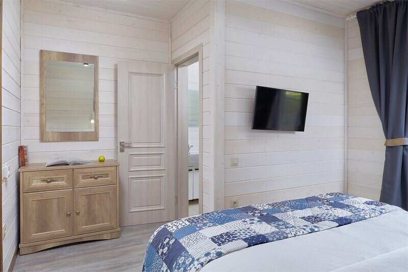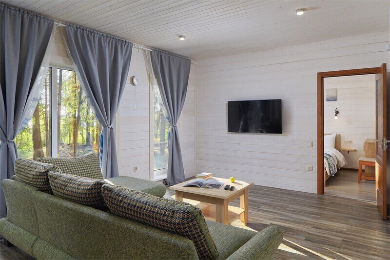 В каждом доме (100 м2) есть три спальни, большая гостиная, сауна, Wi-Fi, гриль