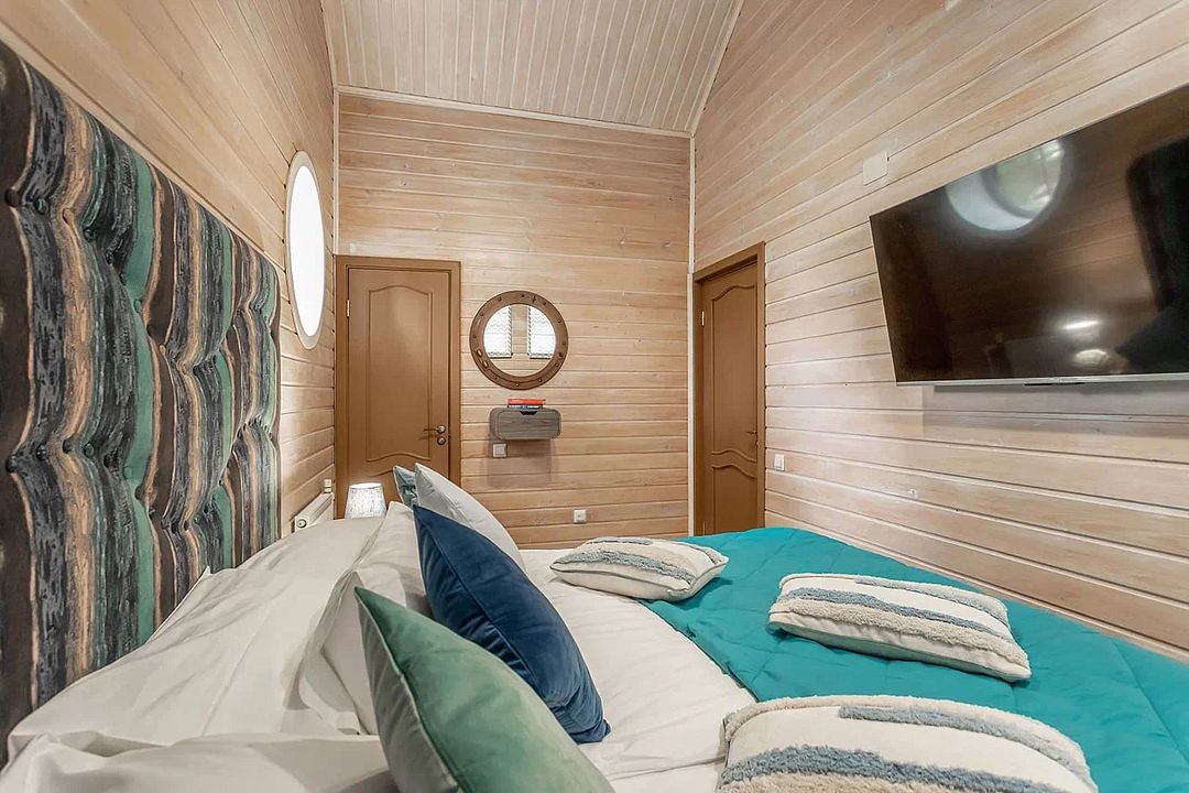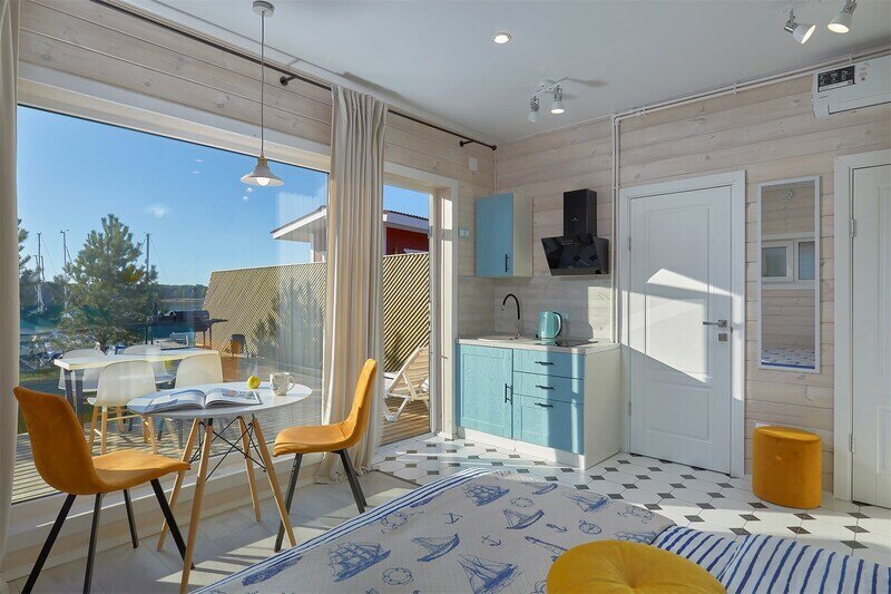 Отдельно стоящий домик на территории яхт-клуба с мангальной зоной и террасой. Оборудованная кухня с холодильником, чайником и микроволновой печью, набор посуды, отдельная гардеробная и душевая с санузлом, кондиционер. В коттедже предусмотрено проживание с собакой за дополнительную плату.