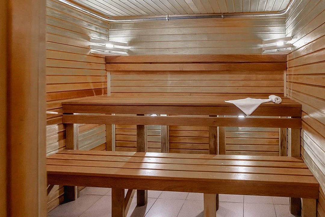 Просторный семейный двухкомнатный номер с сауной в мини-гостинице на втором этаже .
