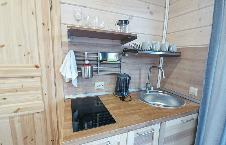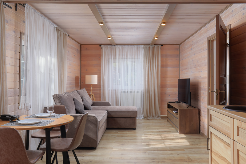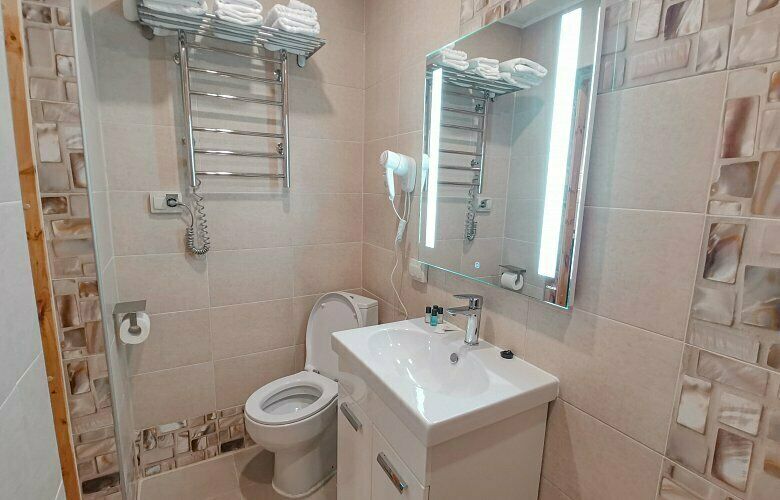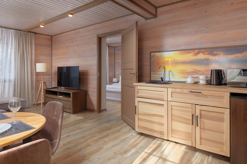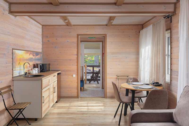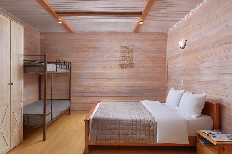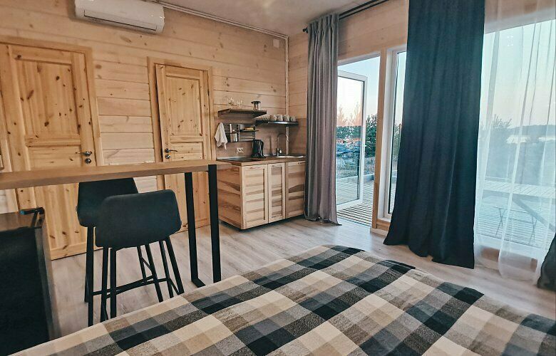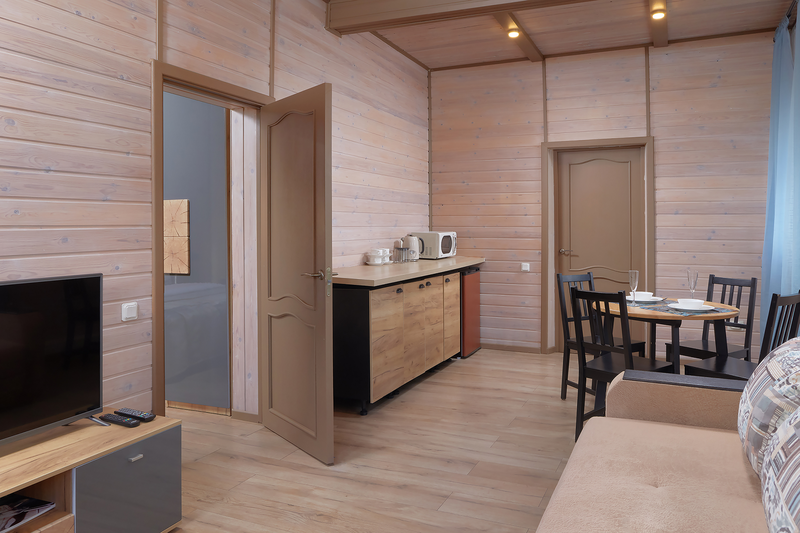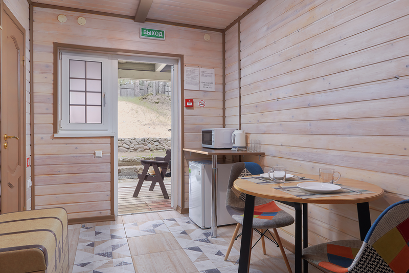 Рядом с мини-гостиницей зона отдыха с общим мангалом. Шампуры и решетки выдаются бесплатно в здании администрации, уголь и розжиг можно приобрести на месте. По предварительному запросу может быть предоставлена детская кроватка. Возможно дополнительное размещение двух гостей на раскладном двуспальном диване в гостиной за отдельную плату. В номере предусмотрено проживание с собакой за дополнительную плату.