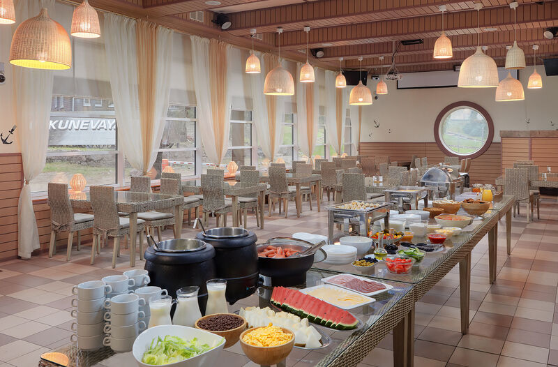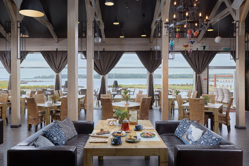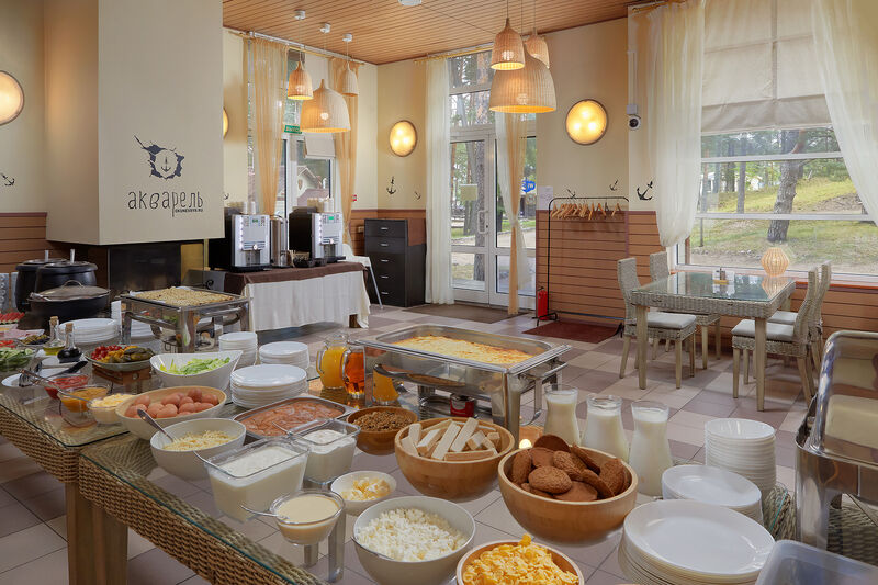 - В панорамном ресторане подают блюда аутентичной кухни "Акварель", где подают вкусные блюда и прекрасный вид на Финский залив