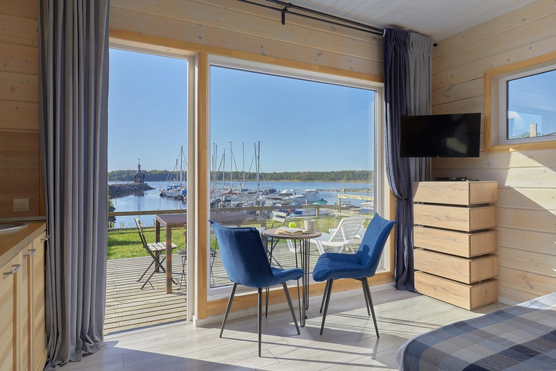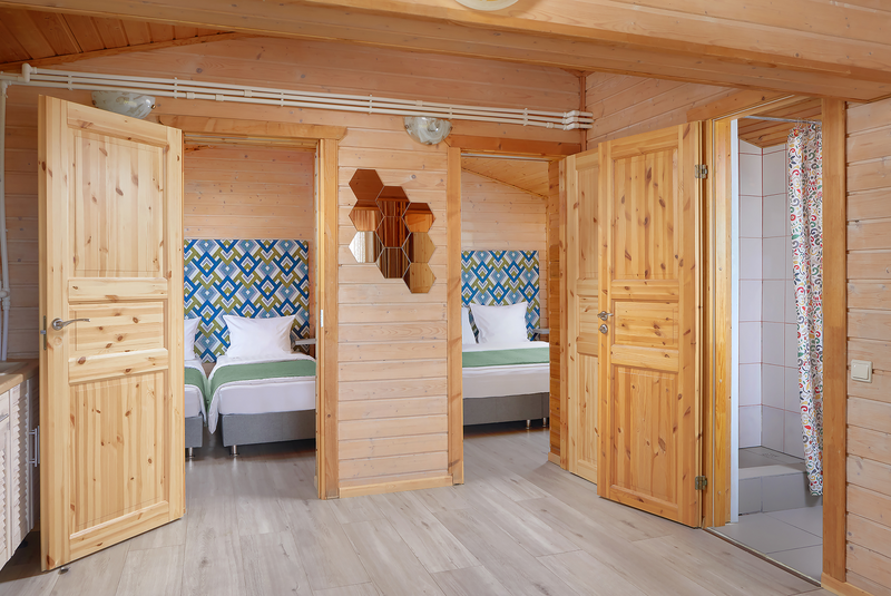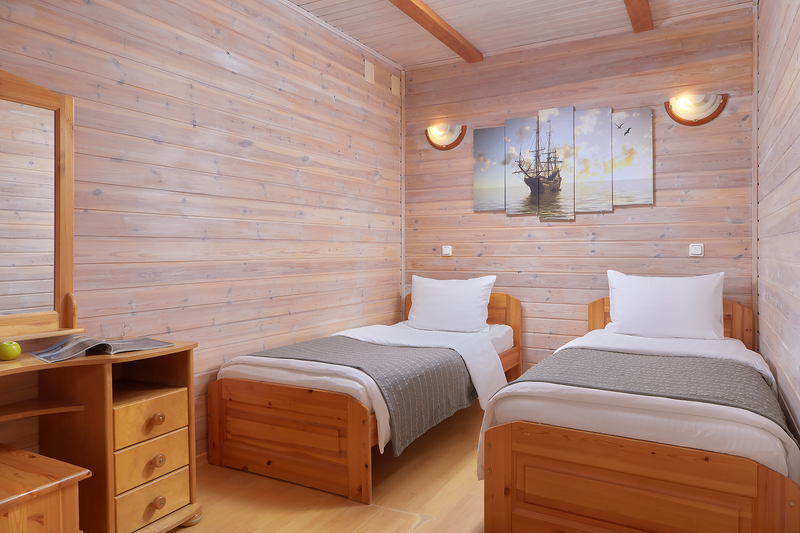 Есть номера с двуспальной или двумя односпальными кроватями. Рядом с мини-гостиницей зона отдыха с общим мангалом. Шампуры и решетки выдаются бесплатно в здании администрации, уголь и розжиг можно приобрести на месте. По предварительному запросу может быть предоставлена детская кроватка. Возможно размещение третьего гостя на дополнительном спальном месте за отдельную плату (только в номере гостиницы "Морячок").