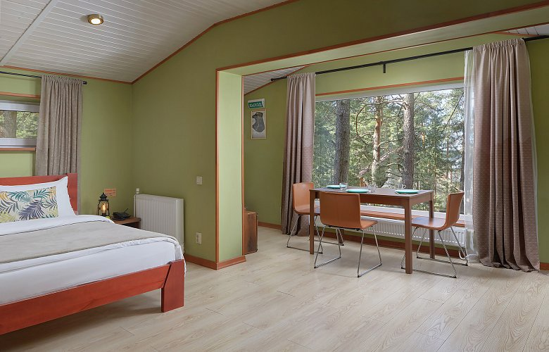 Просторный семейный двухкомнатный номер с сауной в мини-гостинице на втором этаже . Сауна входит в стоимость проживания.