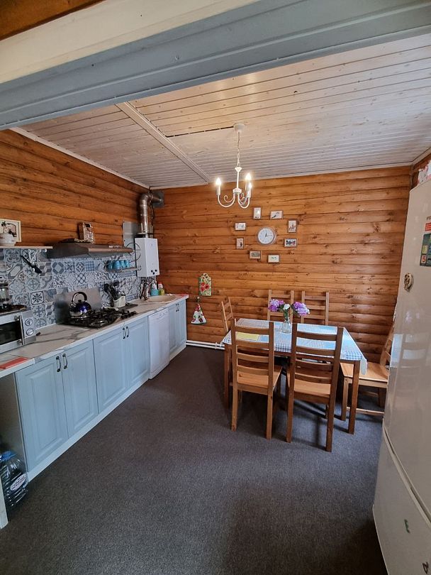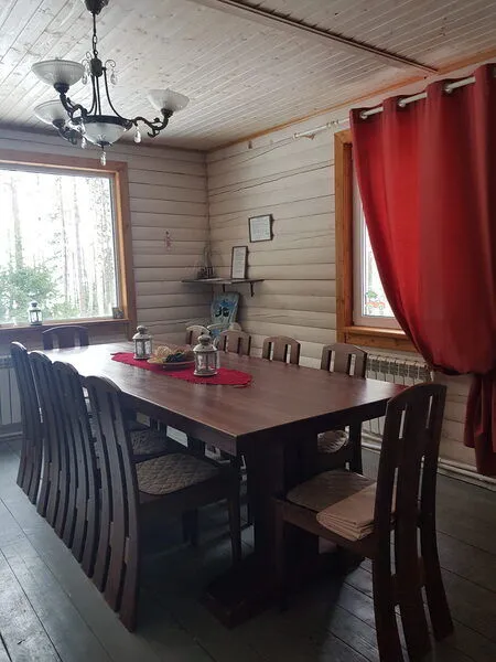 Дом рассчитан на 10 человек (8+2). Площадь 170кв.м. Материал - дерево (брус)