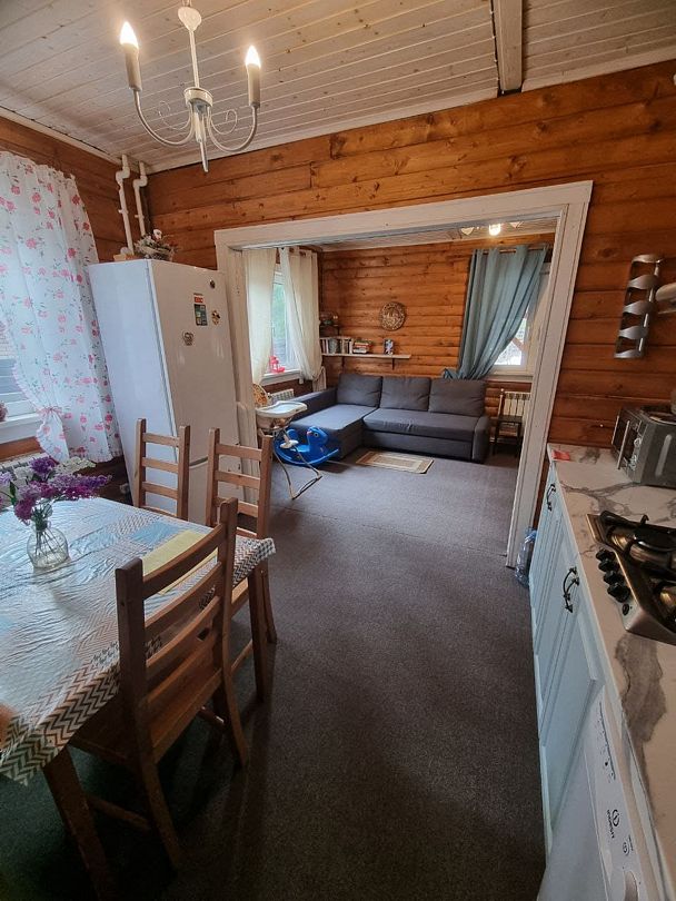 Дом рассчитан на 6 человек (4+2). Дом выполнен из экологически чистого материала цельного бруса, что дает особую атмосферу в доме!