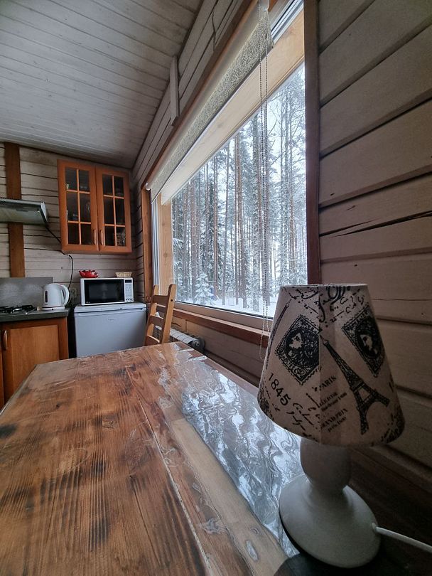 В "прянике" традиционное панорамное окно практически во всю стену, с которого открывается отличный вид на озеро Глубокое.