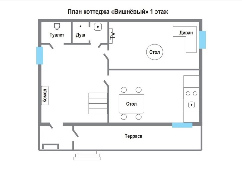 Комфортабельный коттедж до 2 взрослых + 2 ребенка с террасой. Одноэтажный коттедж с