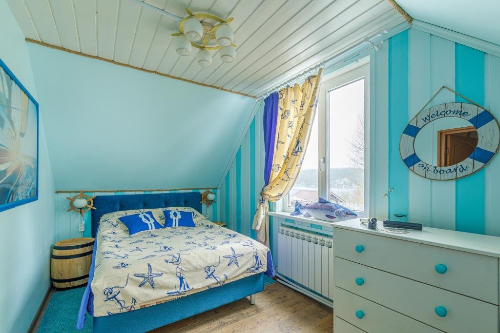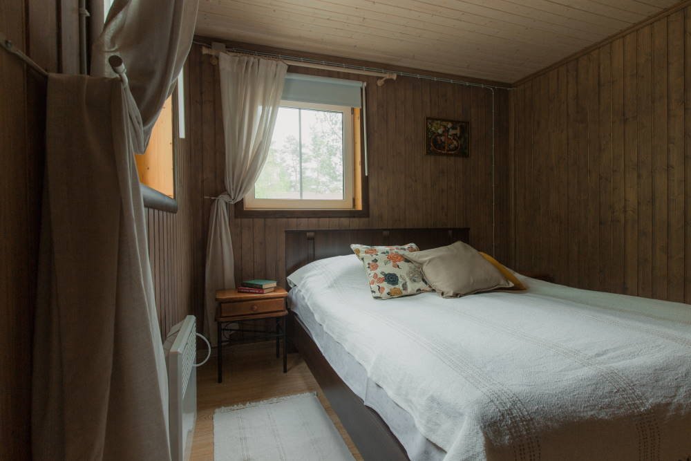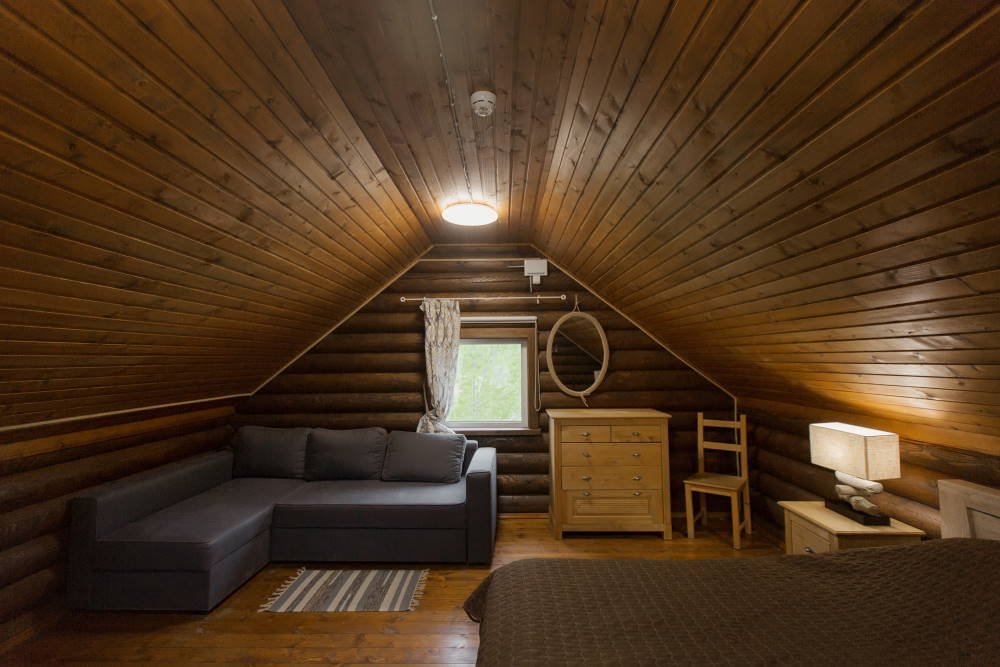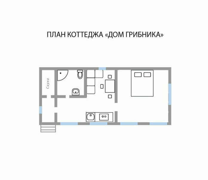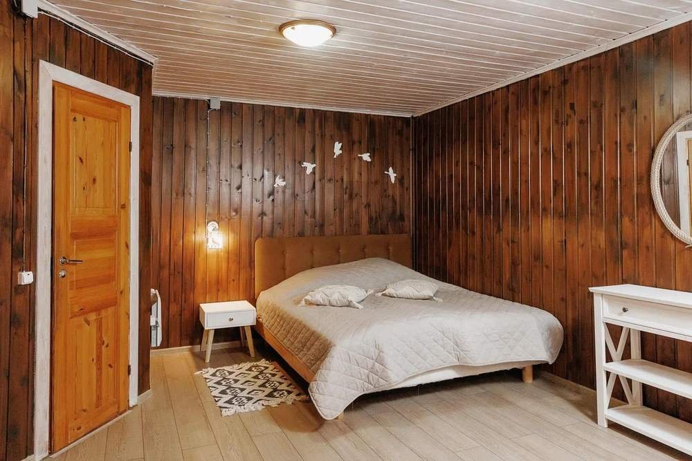 изолированной спальней, кухней – гостиной с камином и сауной. Дом расположен на