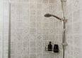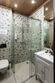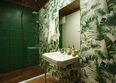 работы. Роскошная ванная комната с окном вмещает в себя душевую кабину с «тропическим
