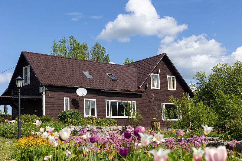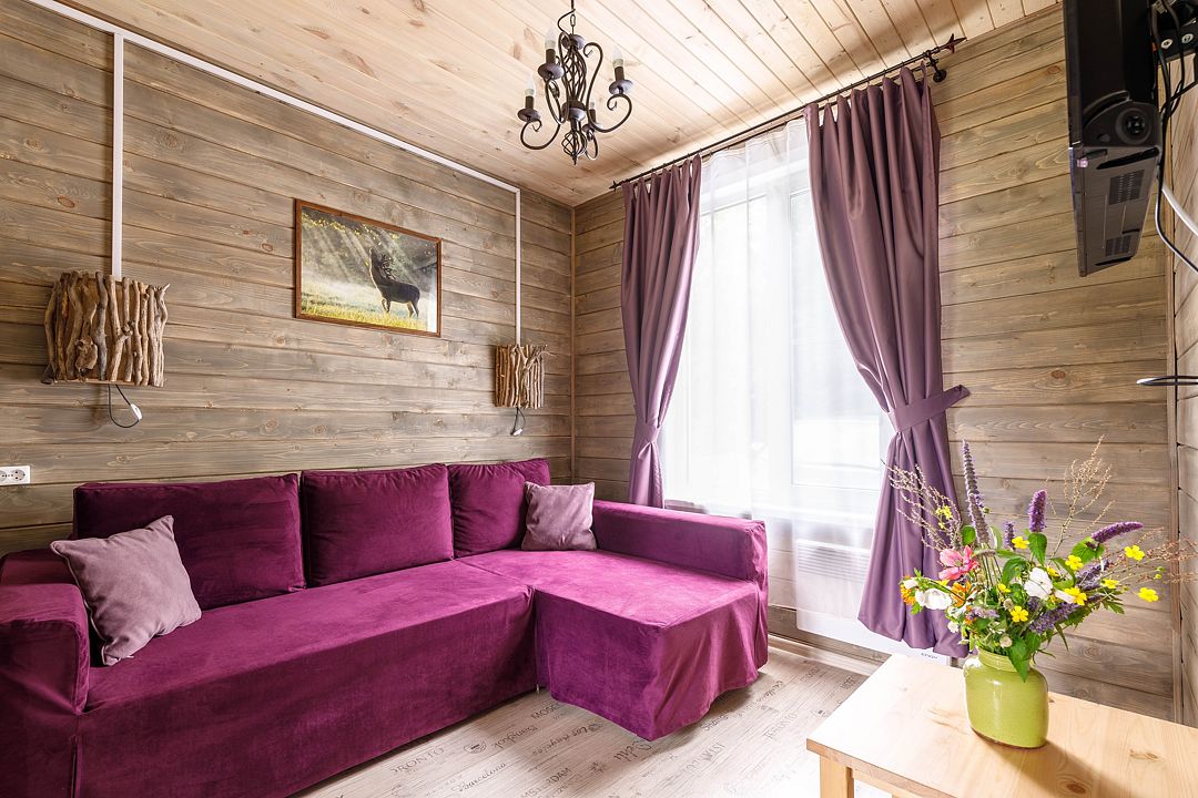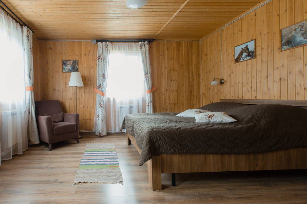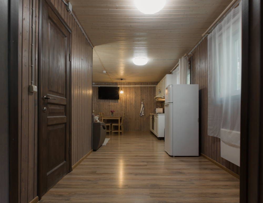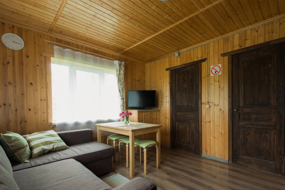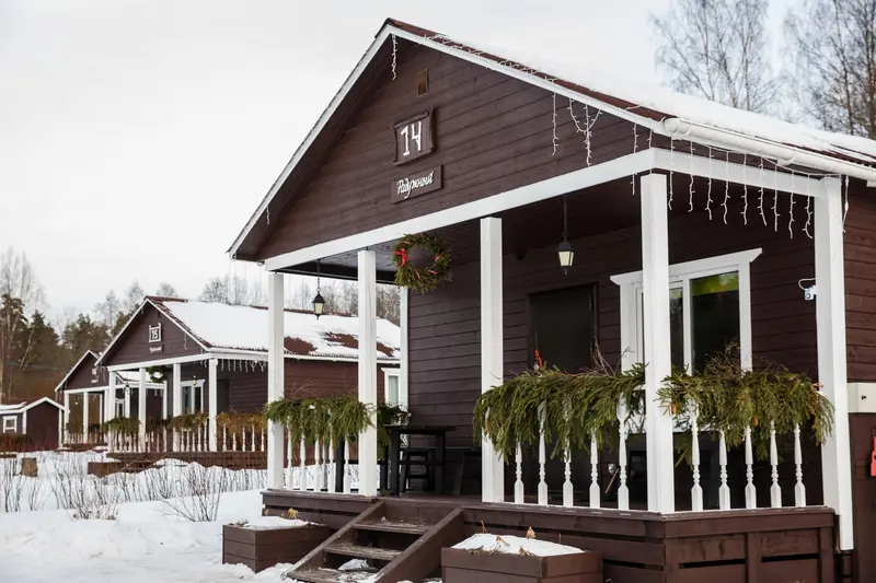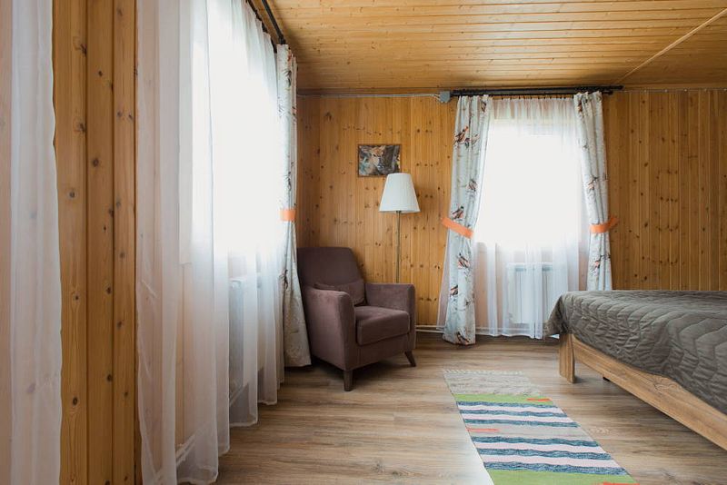 К проживанию предоставляются 11 благоустроенных комфортабельных коттеджей, вместимостью от 2 до 14 человек, которые находятся поодаль друг от друга.