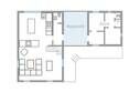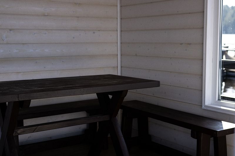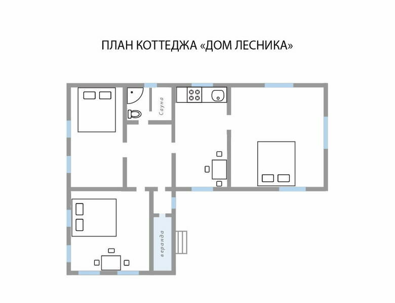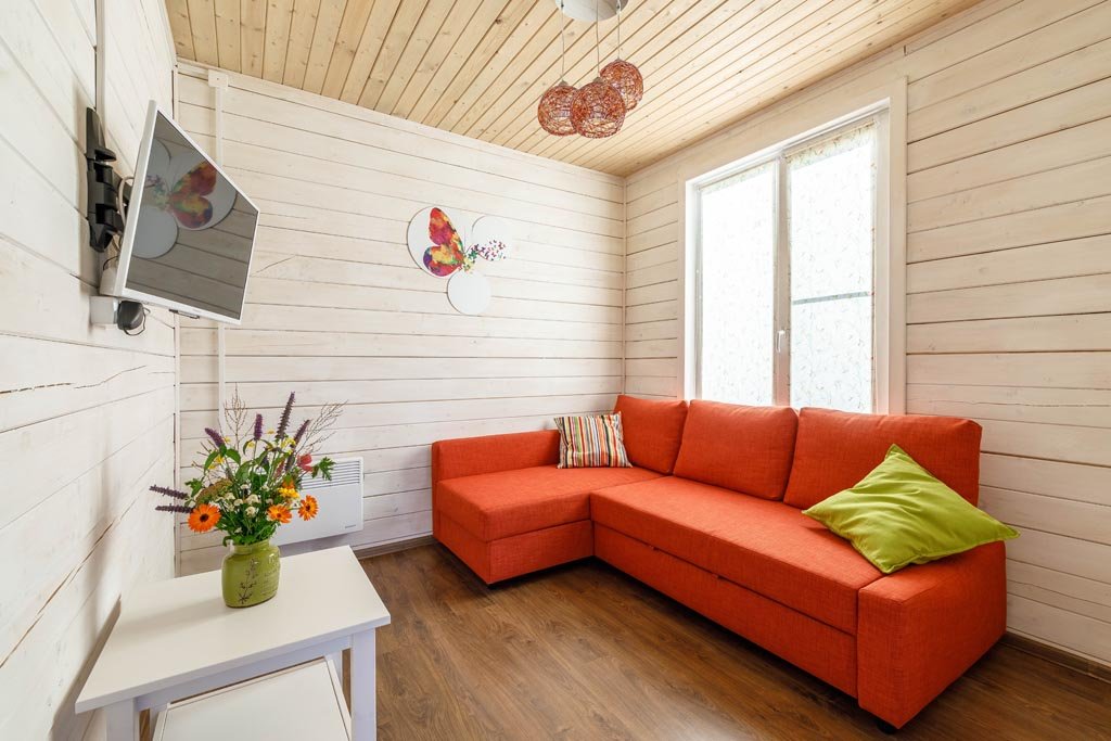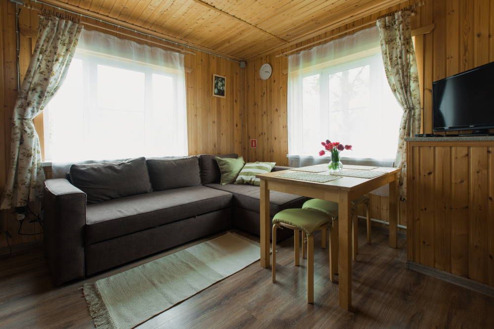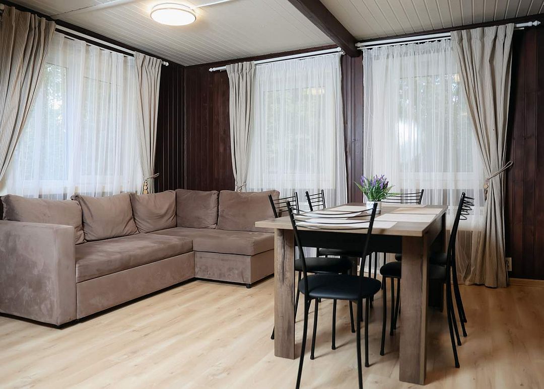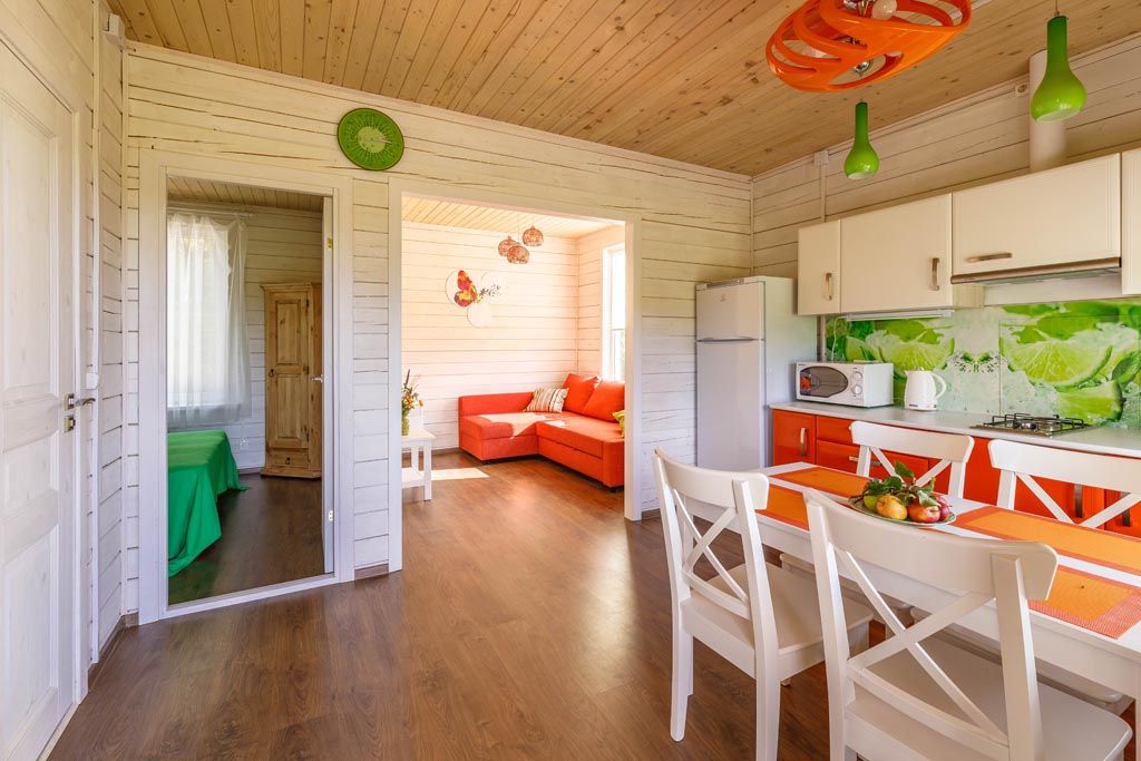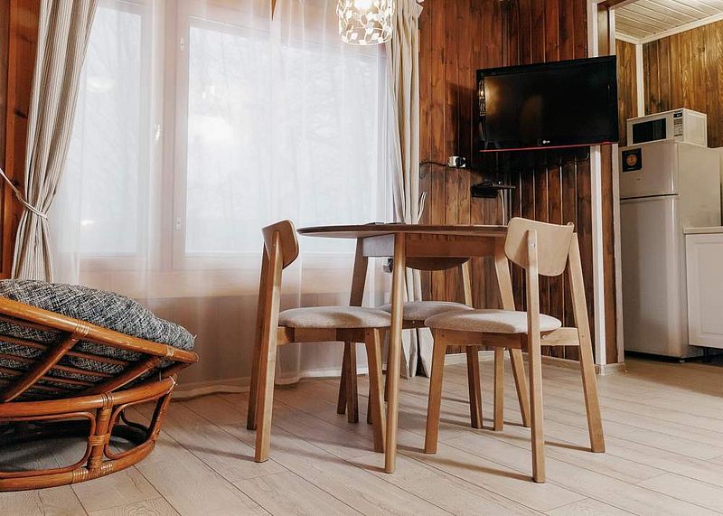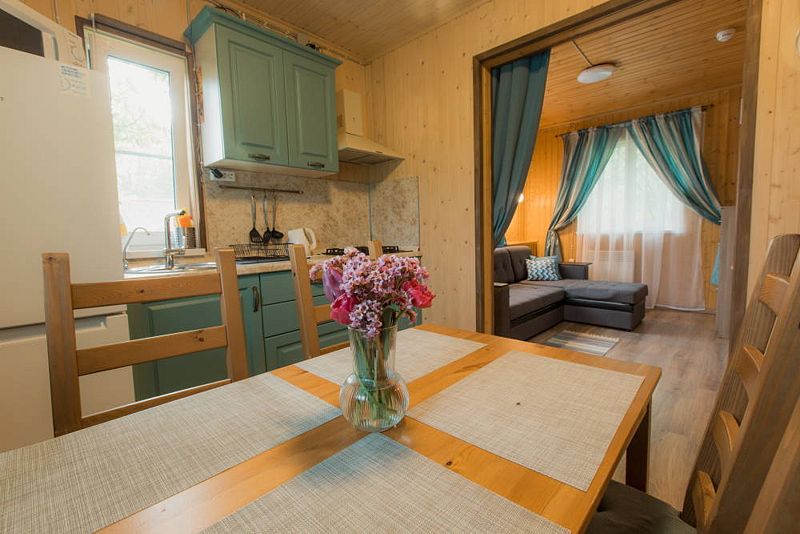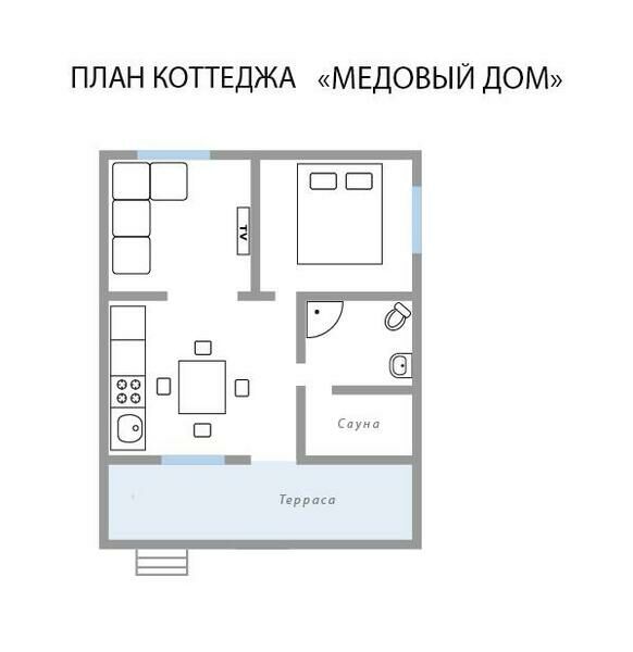 Комфортабельный коттедж на 4-х человек с террасой. Одноэтажный коттедж с одной изолированной спальней, кухней - гостиной и сауной.