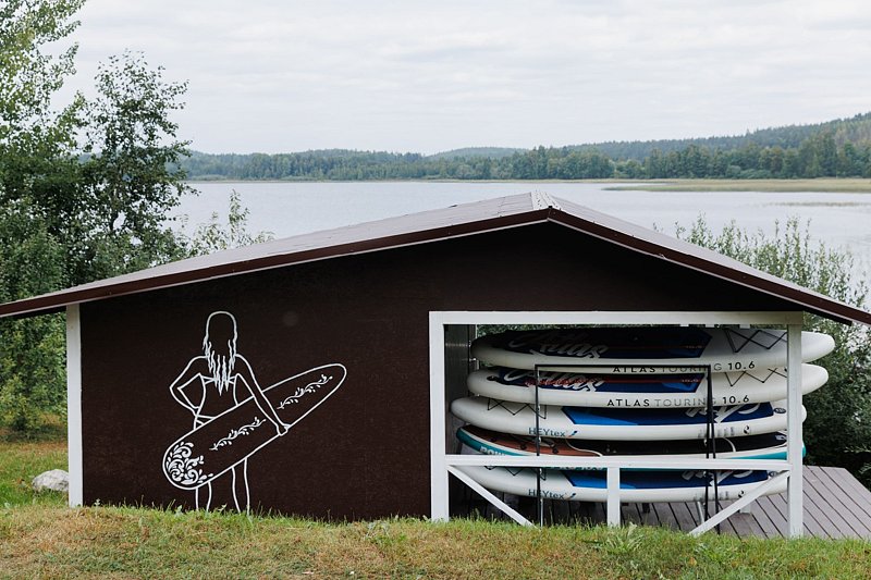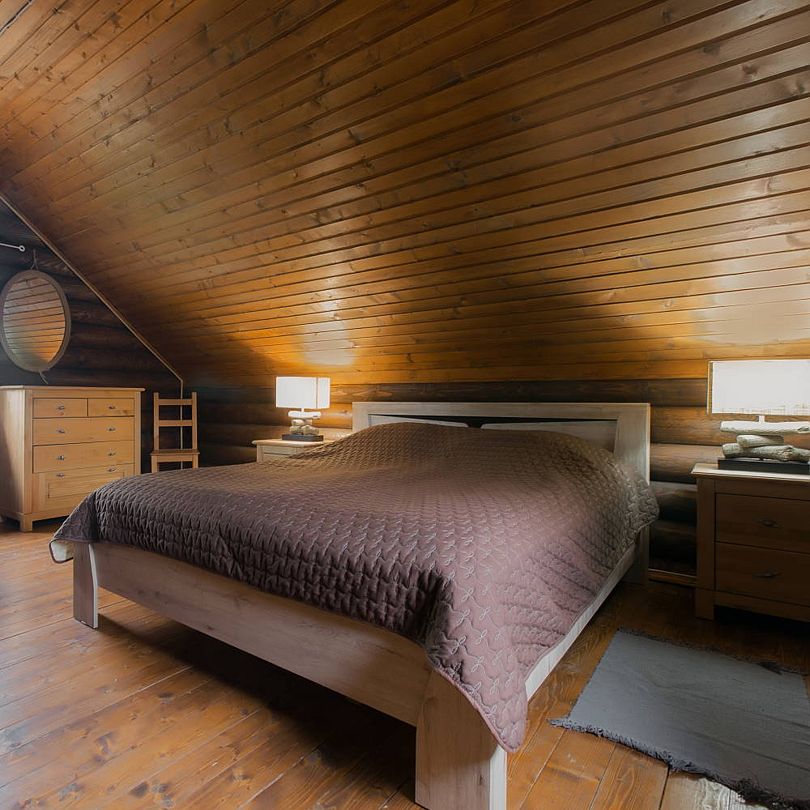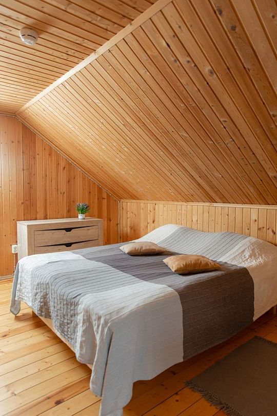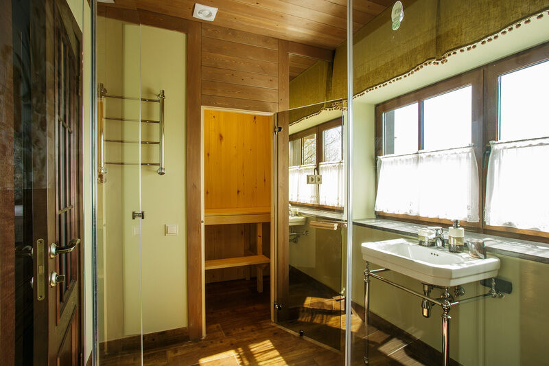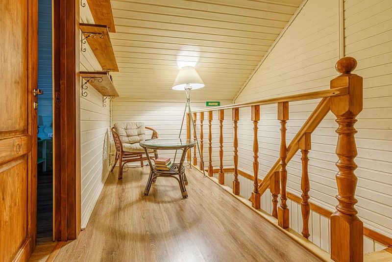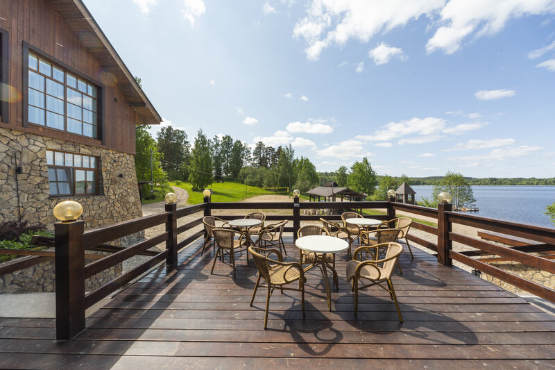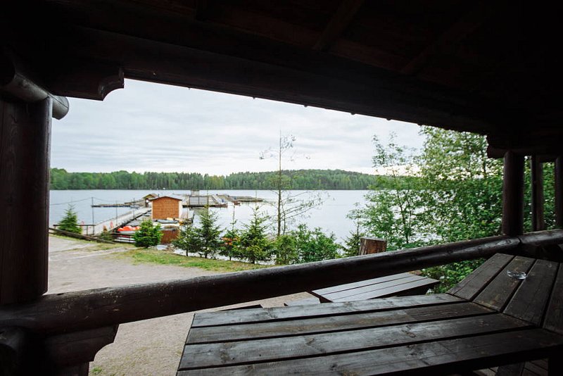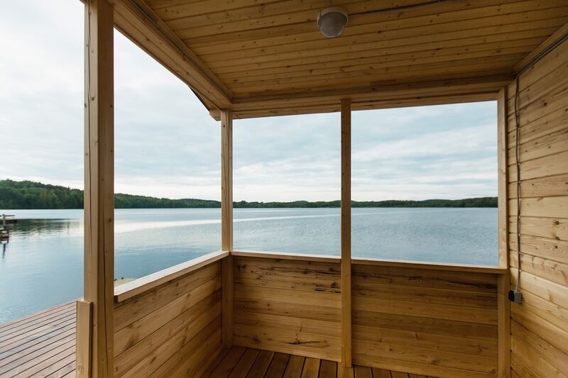 душем» и сауну. Высокие деревянные потолки и панорамные окна с видом на озеро не оставят