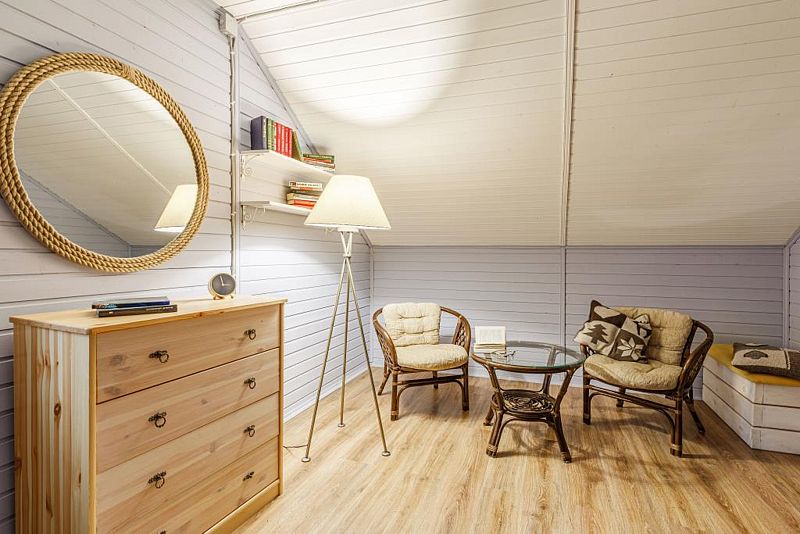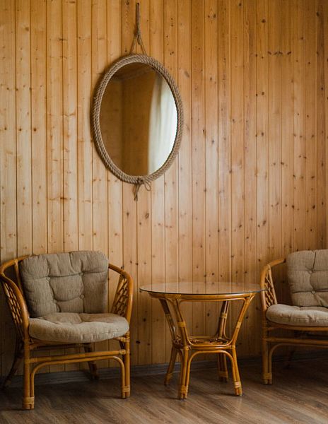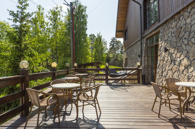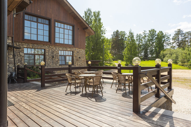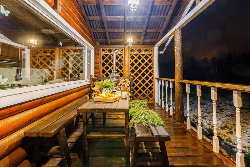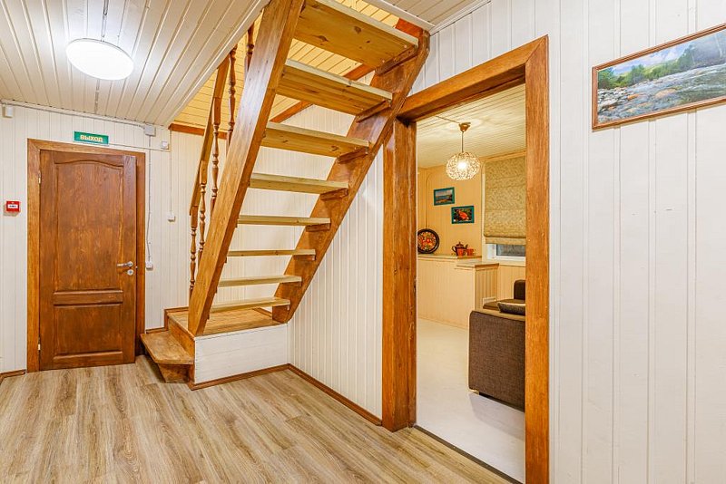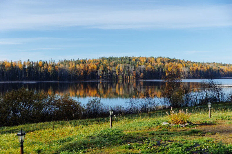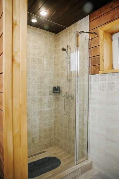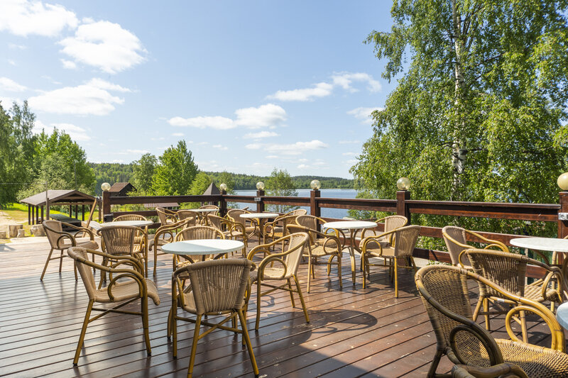 душем» и сауну. Высокие деревянные потолки и панорамные окна с видом на озеро не оставят