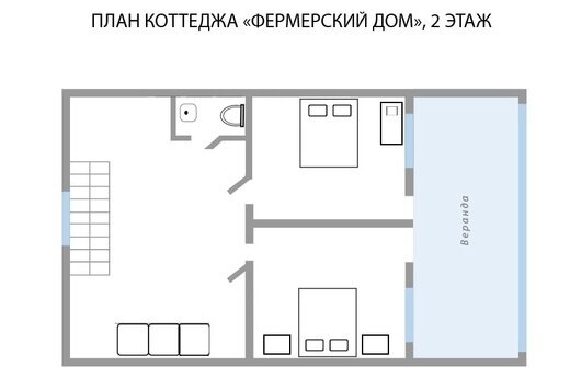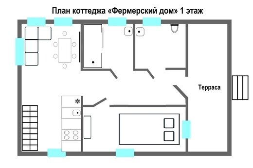 Комфортабельный коттедж до 4-х человек с террасой. Одноэтажный коттедж с одной
