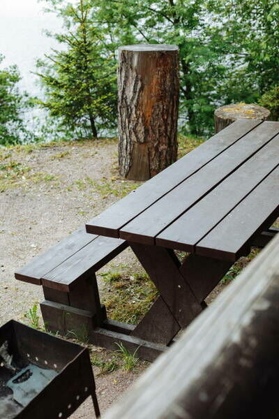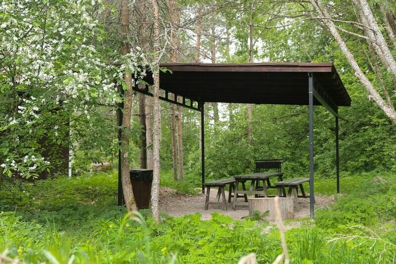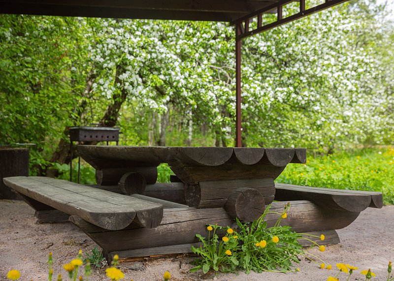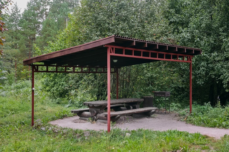 Обустроенная зона отдыха рядом с домом, мангал, комплект шампуров для приготовления шашлыка.