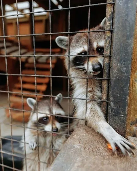 Почетное место на ферме занимают еноты Роллс и Ройс.
