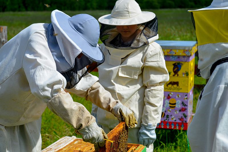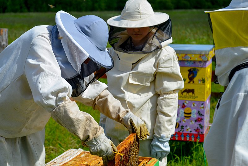 - возможность сфотографироваться в снаряжении пасечника в компании одной из пчелиных семей.