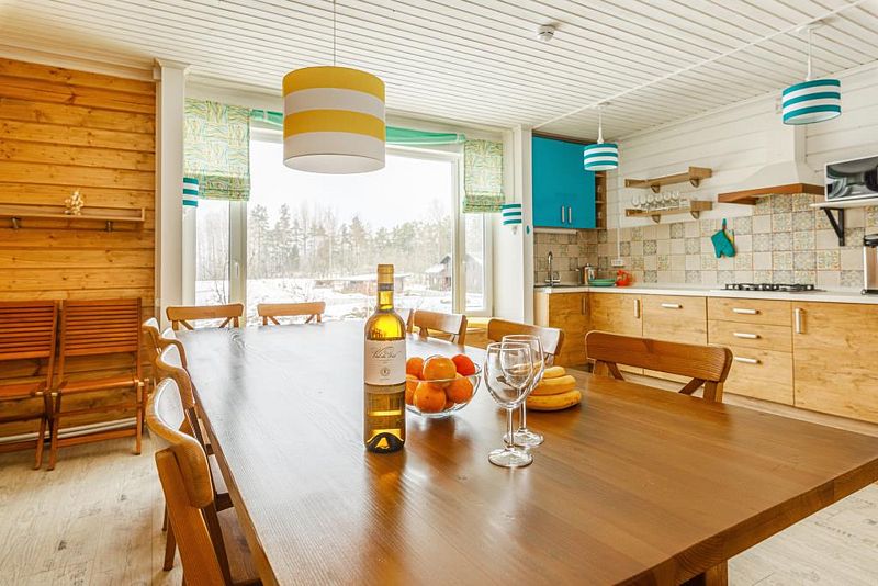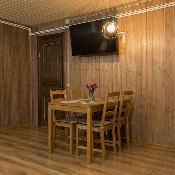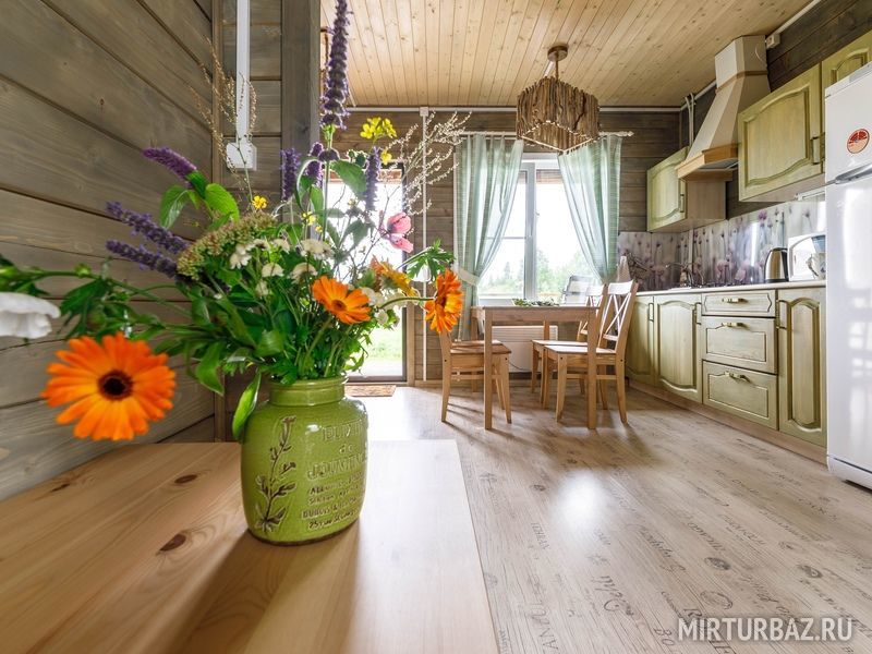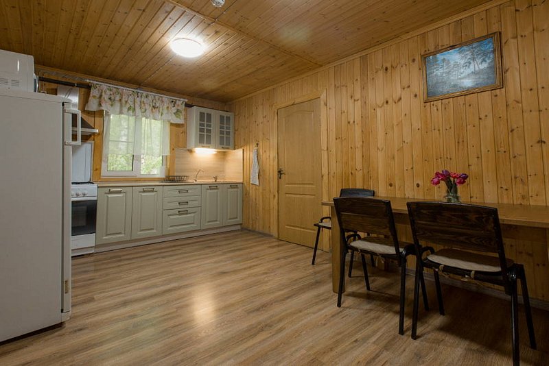 Гости всегда смогут заказать в коттедж блюда из разнообразного домашнего меню базы отдыха. Все продукты собственного производства и самого лучшего качества. Есть возможность самостоятельно готовить на кухне в коттеджах.