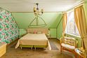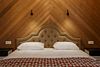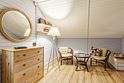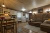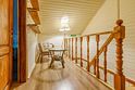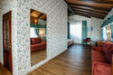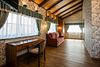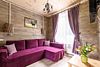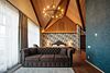 Стильный и просторный номер с высокими деревянными потолками, мягким диваном,