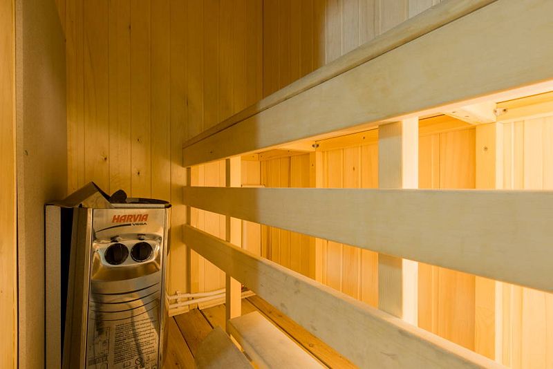 изолированной спальней, кухней - гостиной и сауной.