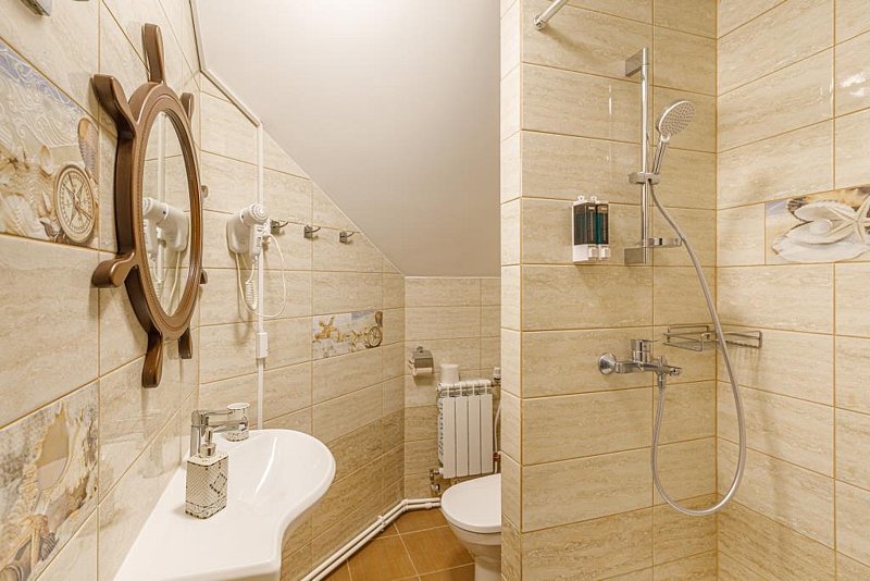 плодотворной работы. Просторная ванная комната с «тропическим душем» и большим