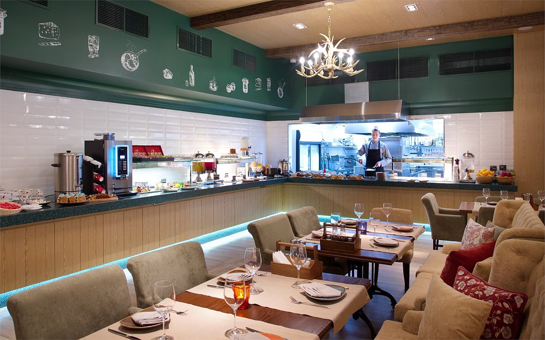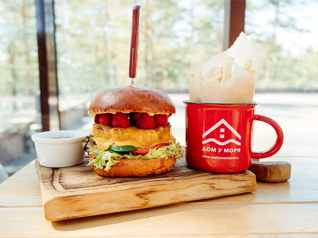 Меню ресторана очень разнообразно: европейские салаты и закуски, средиземноморские блюда из морепродуктов и рыбы, американские стейки и бургеры, русские супы, а также специальное меню для маленьких гостей. -