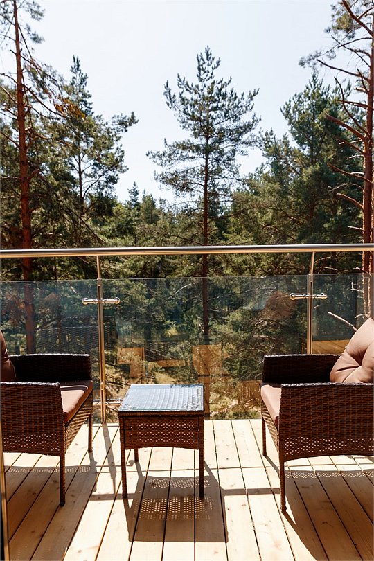 На крыше ресторана работает бар-терраса, с которого открывается восхитительный вид – в окружении сказочных верхушек сосен вы забудете о городской суете и вдоволь надышитесь свежим воздухом.