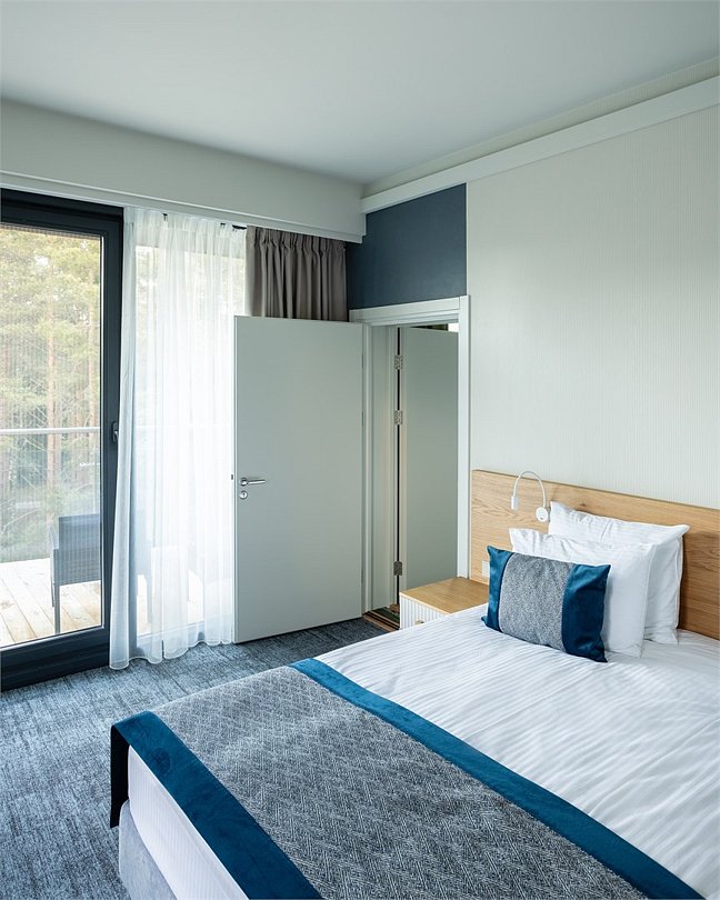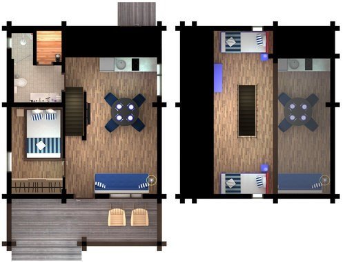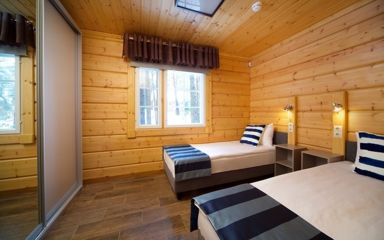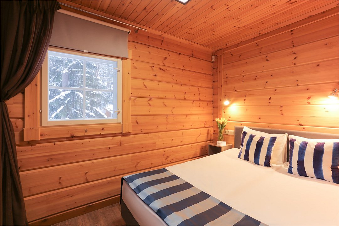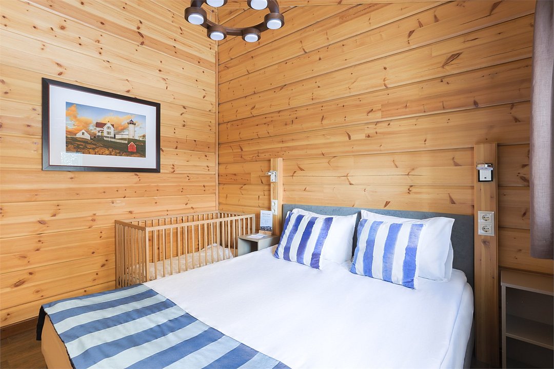 Еще одна особенность этих коттеджей - это большие двуспальные кровати, которые придутся по душе любителям простора.