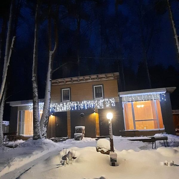 Коттедж Классик представляет собой таунхаус, который разделён на 2 части. Каждая из них сдаётся отдельно.