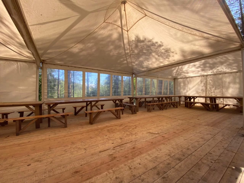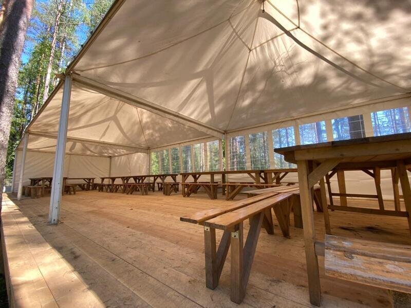Время аренды: 10:00-20:00. Новый шатер вмещает до 80 гостей, идеально подходит для компаний, планирующих выезд на природу и приготовление барбекю. Шатер расположен в красивом и уединенном месте.