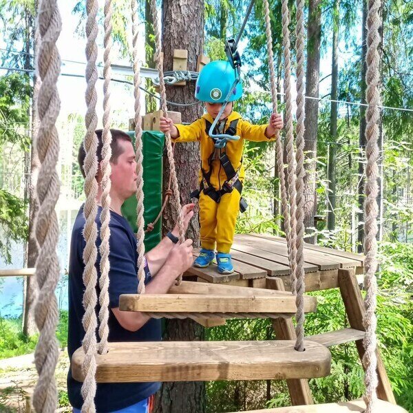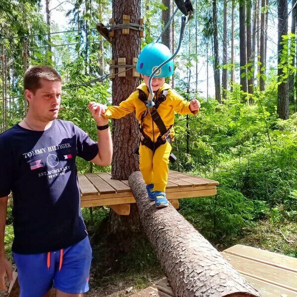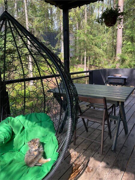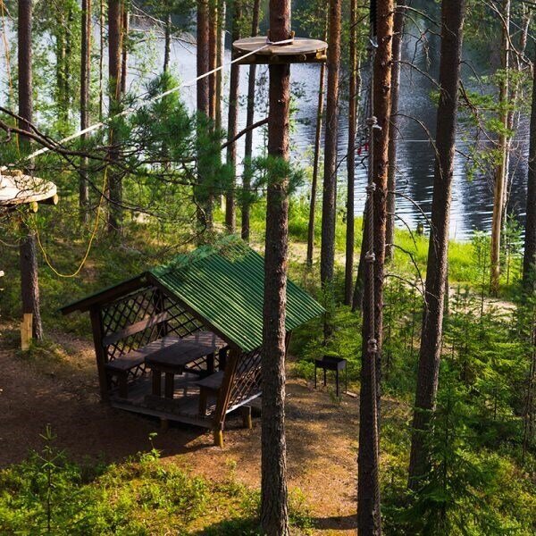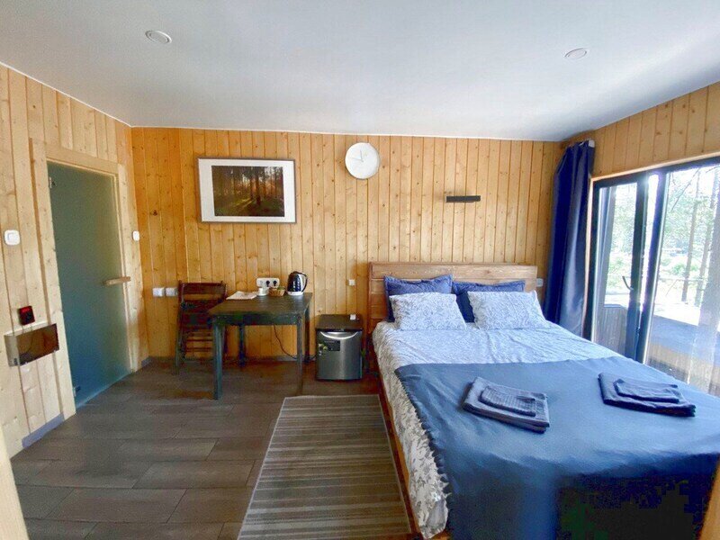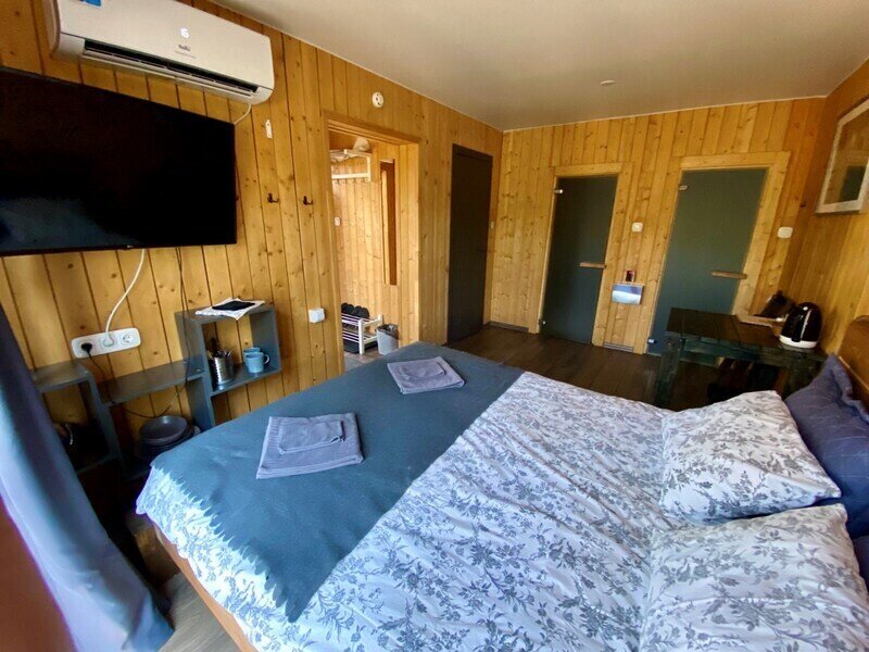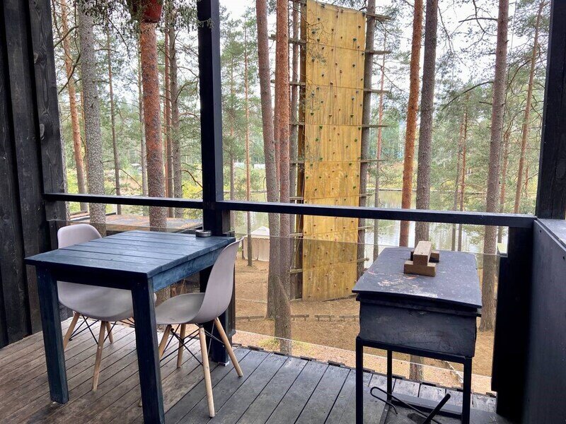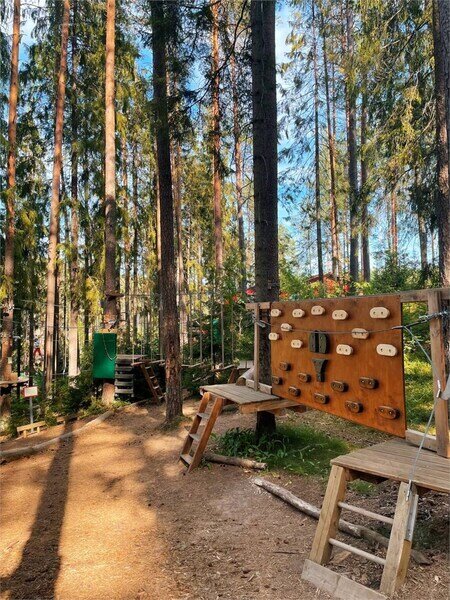 Путешествие с паройНе уединенно, но веселоОстановились в номере с сауной. Большое спасибо в первую очередь за политику дог френдли, нам всем было очень приятно провести у вас эти деньки. Ездили в будни и один праздничный день. Переживала, что будет убитый номер и слишком громкий галдеж, как тут пишут. Но все сошлось прекрасно - номер в отличном состоянии, верёвочный парк работает не до поздна. Разве что днём музыка гремит из беседки и банкетного зала, но мне это не доставило дискомфорта. Днём мы гуляли по территории, разок даже сами посетили верёвочные трассы (остались в восторге, но они не очень хорошо сбалансированы по сложности и возможности спуститься), вечером жарили шашлыки на своей террасе и лежали в сауне. Завтраки очень вкусные. Номер сдали вообще спокойно. Погода была солнечная, закаты красивейшие, этот небольшой отпуск я запомню надолго, и с удовольствием вернулась бы сюда ещё.