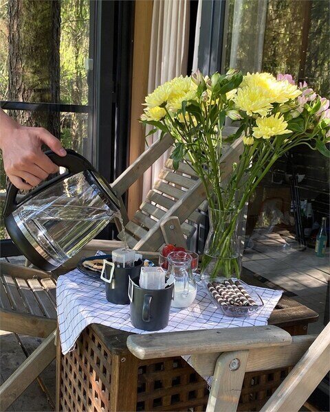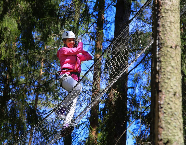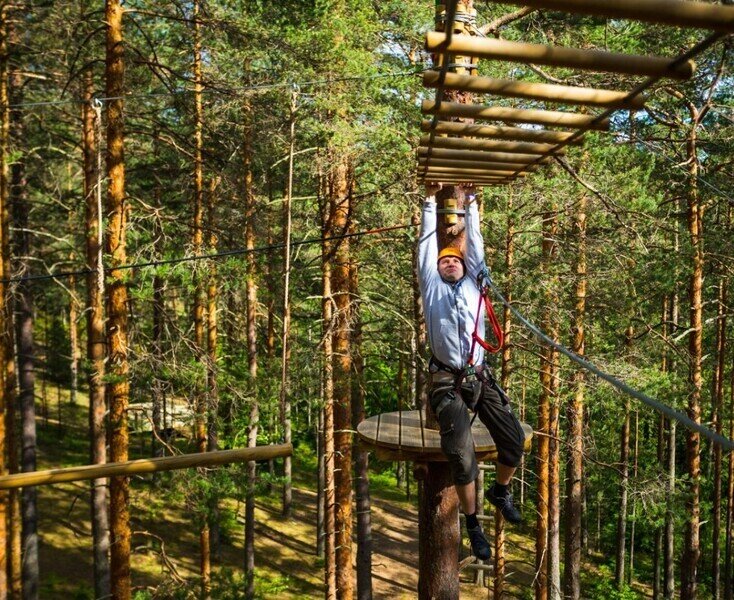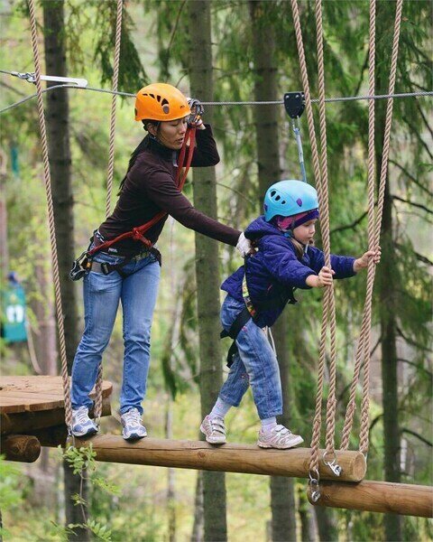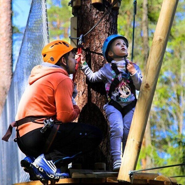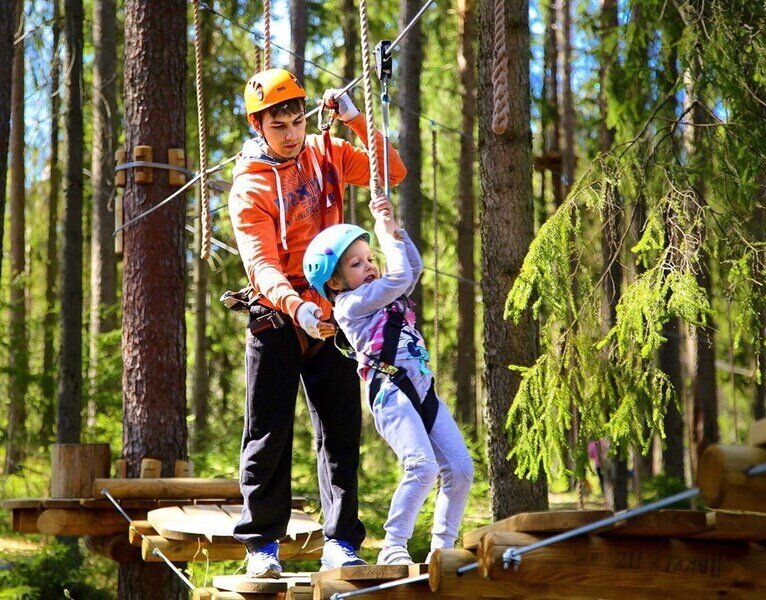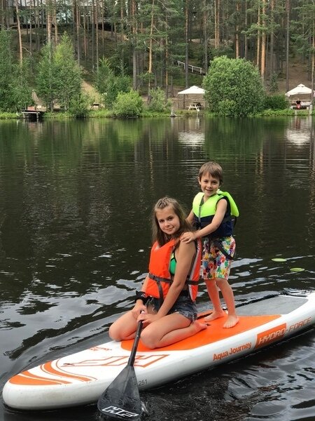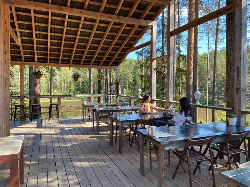 Путешествие с паройНе уединенно, но веселоОстановились в номере с сауной. Большое спасибо в первую очередь за политику дог френдли, нам всем было очень приятно провести у вас эти деньки. Ездили в будни и один праздничный день. Переживала, что будет убитый номер и слишком громкий галдеж, как тут пишут. Но все сошлось прекрасно - номер в отличном состоянии, верёвочный парк работает не до поздна. Разве что днём музыка гремит из беседки и банкетного зала, но мне это не доставило дискомфорта. Днём мы гуляли по территории, разок даже сами посетили верёвочные трассы (остались в восторге, но они не очень хорошо сбалансированы по сложности и возможности спуститься), вечером жарили шашлыки на своей террасе и лежали в сауне. Завтраки очень вкусные. Номер сдали вообще спокойно. Погода была солнечная, закаты красивейшие, этот небольшой отпуск я запомню надолго, и с удовольствием вернулась бы сюда ещё.