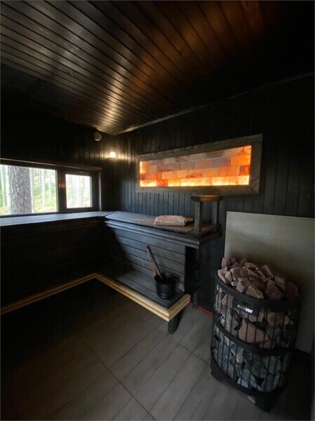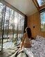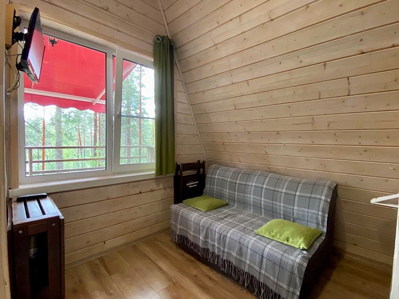 Основное преимущество номера — наличие сауны прямо в номере (в проживание включено 2 часа сауны в сутки, а если вы проживаете несколько дней, то можно использовать все время в один день). К номеру ведут тропинки, вписанные в ландшафт соснового леса.