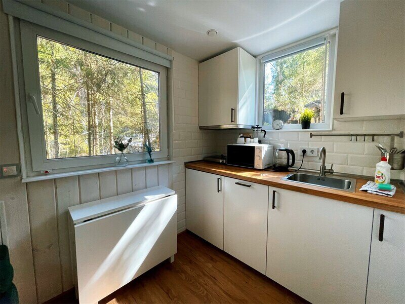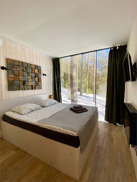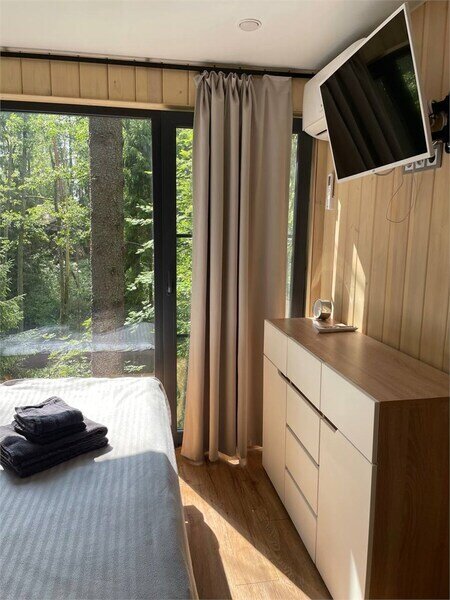 Путешествие с семьейОбзорные окна в домиках и сосны вокруг сделали своё дело. Получился настоящий экоотдых!Отдыхали семьёй 3 дня в домике тайни хаус. Очень приветливый персонал, вкусная еда. Испробовали многие развлечения, что предлагал парк. Я получила незабываемые впечатления от спуска по мегатроллей через лес и озеро🔥🔥🔥 Свежий воздух, после которого мы так крепко спали в этом уютном маленьком домике. Утром обязательно открывали шторы, чтобы любоваться видом через обзорное стекло, наблюдали за синичками, за местными кошечками, за опадавшими листьями с деревьев. В домике очень тепло, нам хватало тёплых полов, батарею отключали. Минус был в очень жёстком диванчике, которое предпологалось как доп.место для ребёнка, приходилось стелить все покрывала и полотенца, чтобы хоть как-то смягчить диванные перепады. А для нас кровать была удобная, с хорошим матрасом, в итоге под утро спали на нём втроём)) Спасибо за отдых! Мы очень рады, что съездили в Гринвелд.