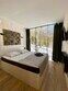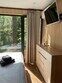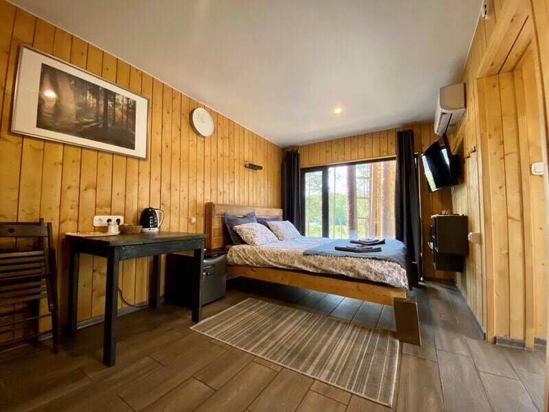 Стильный номер в сосновом лесу на берегу озера с панорамным окном и индивидуальной террасой с мангалом. Данная категория расположена в доме на 2 номера (Таунхаус).