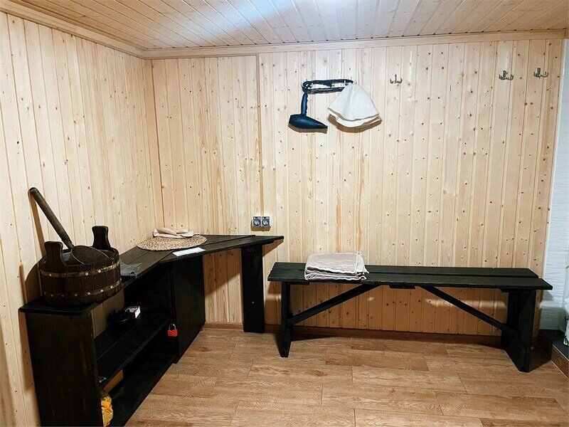 - Русская баня на дровах + горячая купель (2 часа) — 9000 ₽ (доп. час — 4000 ₽);