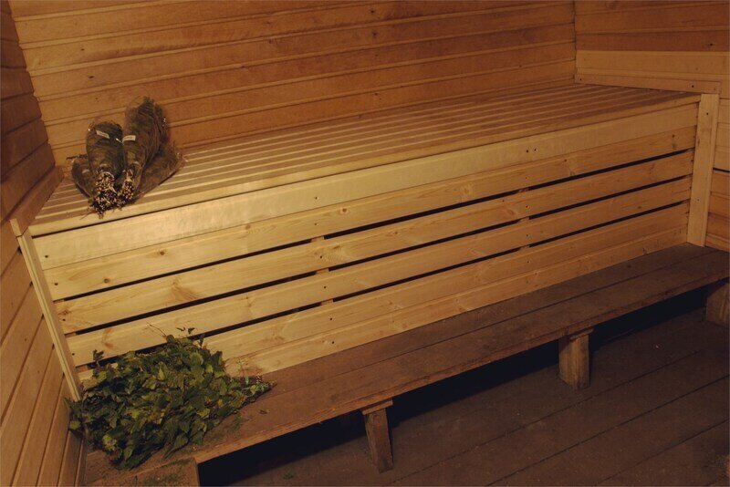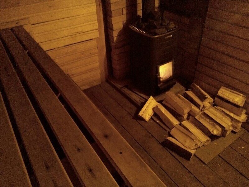 - Русская баня на дровах + холодная купель (2 часа) — 6500 ₽ (доп. час — 3000 ₽);