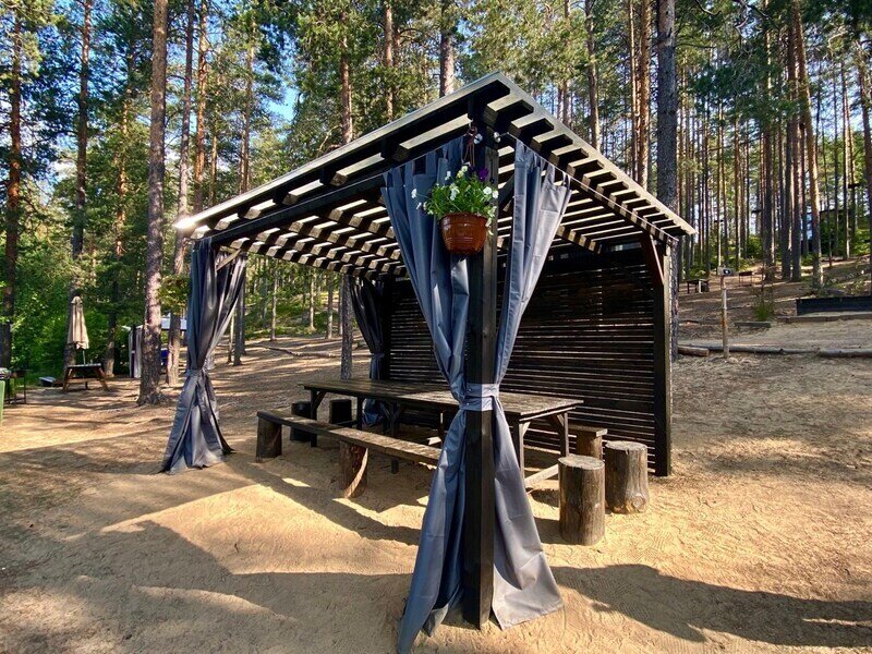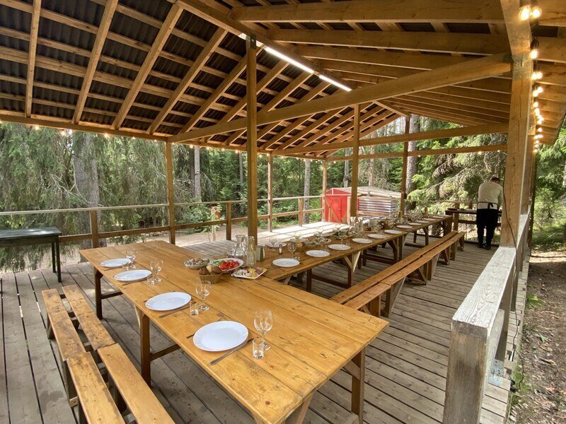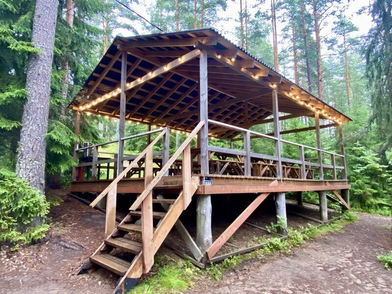 Читать полностьюУютные и просторные утепленные гриль-домики расположены в сосновом лесу с видом на озеро в 30-100 м. от воды. Каждый домик имеет просторное помещение со встроенным финским грилем, удобным столом и скамейками, а также открытую террасу с дополнительным столом и скамейками. В зависимости от количества гостей, указанного при бронировании, вам могут быть предоставлены дополнительные столы на террасу. В домике можно комфортно разместить до 20 гостей летом с посадкой на открытой террасе и до 12 гостей зимой с посадкой внутри.