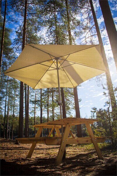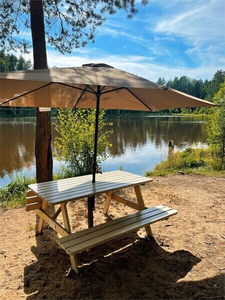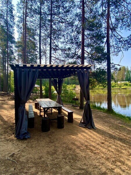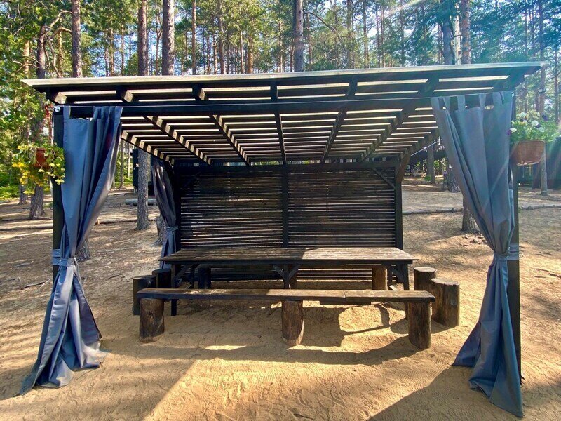 Стоимость аренды — от 3500 ₽ и включает беседку с большим столом, места для 14 человек и мангал. Санузел находится в 50 метрах.