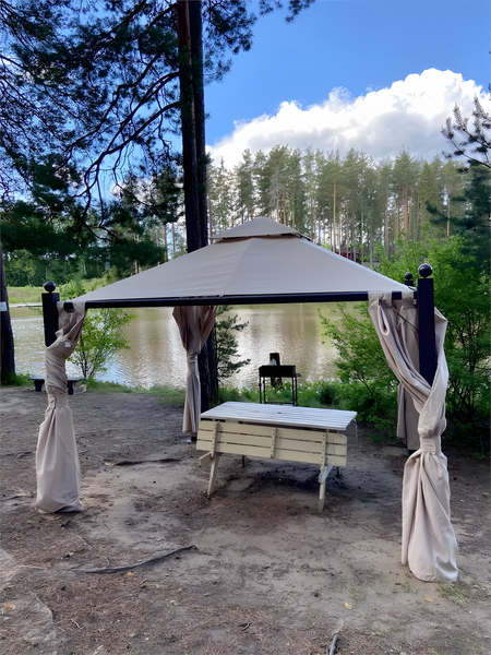 Арендуйте уютную беседку для до 8 человек с мангалом для уединенного отдыха с видом на озеро. Можно взять барбекю-принадлежности с собой или взять их в прокат у администратора. Время аренды: 10:00 – 20:00, продление возможно при условии соблюдения тишины вечером, с согласованием администратором и доплатой 1500 ₽/час до 19:00. Залог: 3000 ₽, который возвращается по окончании отдыха.