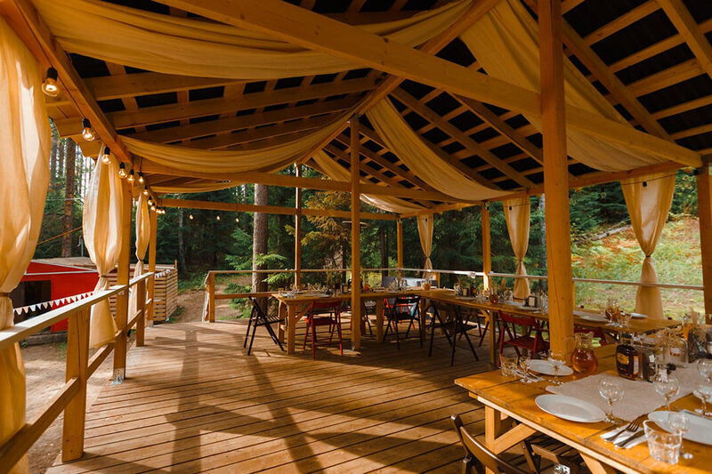 Веранда для мероприятий до 40 человек доступна для аренды с 10:00-20:00. Идеально подходит для свадеб в стиле рустик, а также для корпоративных мероприятий. Возможно украшение веранды с учетом Ваших пожеланий. Также доступны услуги кейтеринга с большим выбором меню.