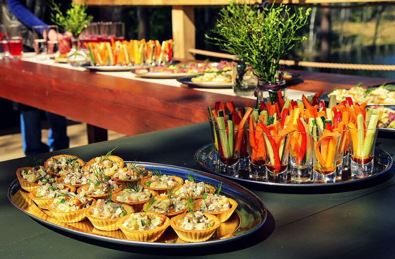 Украшение зала и территории возможно с учетом Ваших пожеланий, также предоставляются услуги кейтеринга с большим выбором меню.