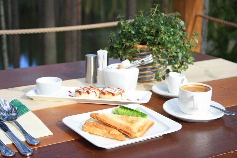 Читать полностьюПанорамный ресторан FLANK Grill & BBQ открыт с 10:00-21:00 ежедневно, предлагает завтраки с 10:00-12:00. Меню включает скандинавские и европейские блюда, в зимнее время в ресторане топится дровяная печь, создавая уют и тепло. В ресторане можно провести время за настольными играми, воспользоваться бесплатным Wi-Fi. Летом гости могут насладиться превосходными блюдами в пространстве ресторана или на открытой веранде с видом на лесное озеро. Для детей имеется зона отдыха с телевизором, игрушками и принадлежностями для рисования.