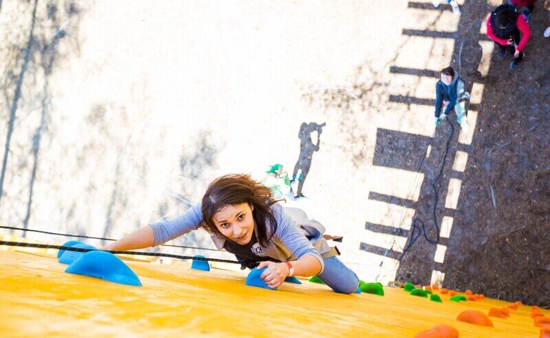 Билет на скалодром предоставляет два подъема и два спуска с инструктором, а также включает в себя инструктаж и прокат страховочного оборудования. Допускаются дети от 5 лет при сопровождении взрослых.