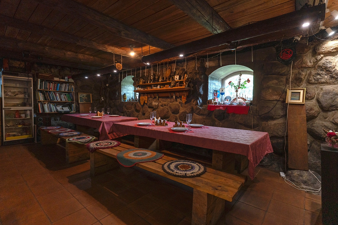 Предлагают эко-питание, завтрак по системе «Шведский стол», а так же обед и ужин. В меню ресторана входят домашние блюда: карельское жаркое, салат из домашних овощей, наливки собственного изготовления. Затраки-400 рублей с человека, обеды комплексные-800 рублей с человека, ужины комплексные-800 рублей с человека.