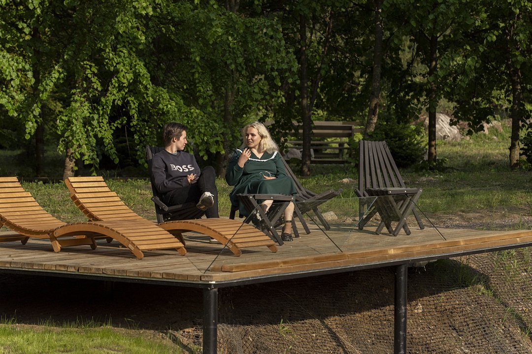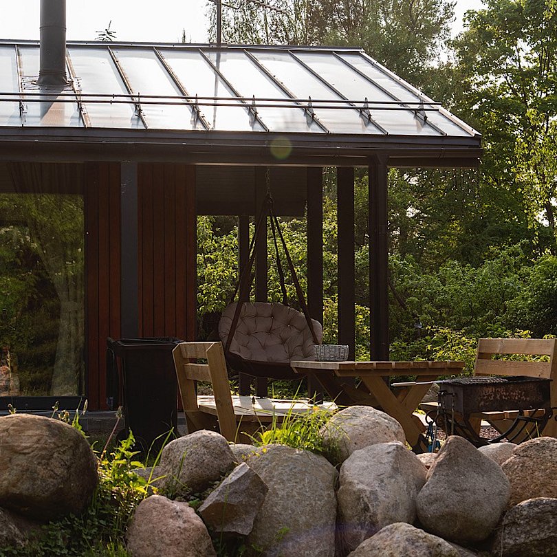 На территории загородного дома Хутор Старая Кууса обустроена терраса.