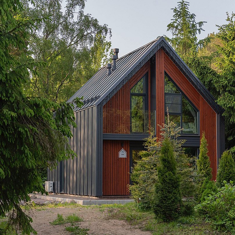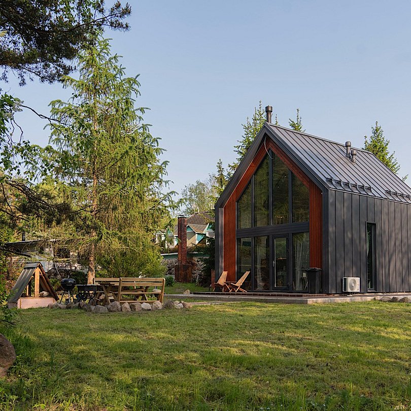 Барнхаус с камином, панорамными окнами и видом на лес и озеро!