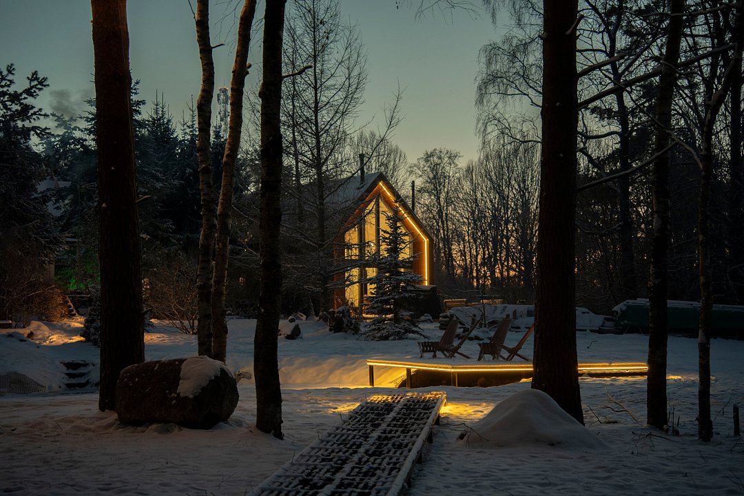 Умный дом с Алисой, камин, терраса над озером и прогулки по лесу.